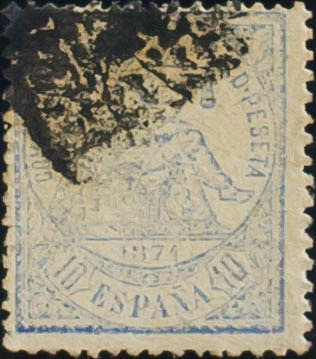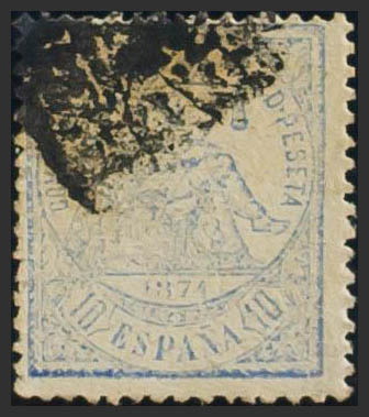 145F. 1874. 10 cts ultramar FALSO POSTAL TIPO II. Matasello Rombo de Puntos. MAGNIFICO Y EXTRAORDINARIAMENTE RARO, PROBABLEMENTE UNICO CONOCIDO EN USADO. Ex Colección Graus.