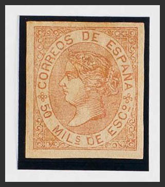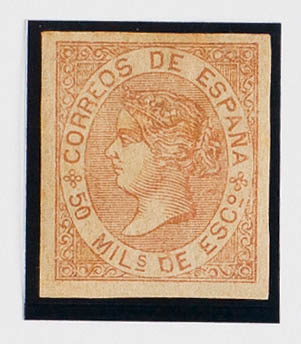 ★ 96Fs. 1867. 50 mils castaño claro FALSO POSTAL TIPO III (sin dentar). MAGNIFICO Y RARO.