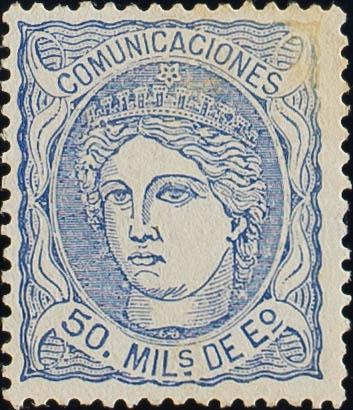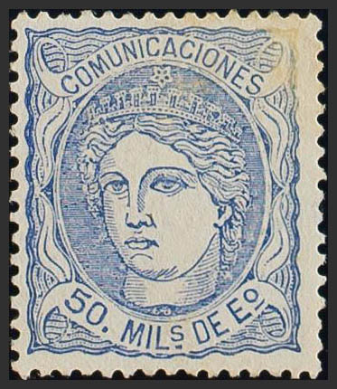 (★) 107F. 1870. 50 mils ultramar FALSO POSTAL TIPO IX. MAGNIFICO.