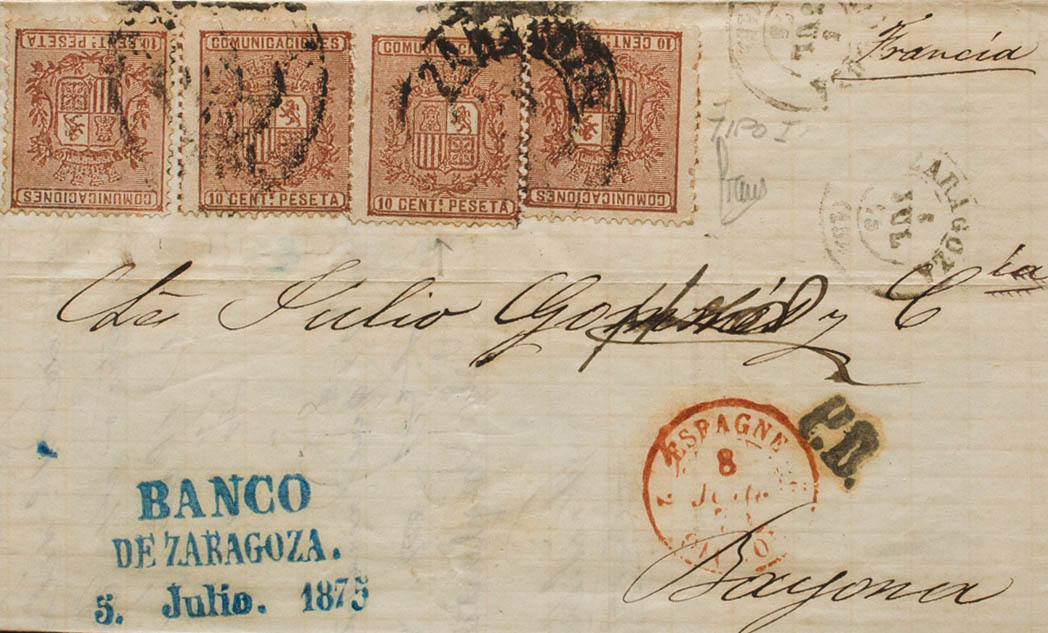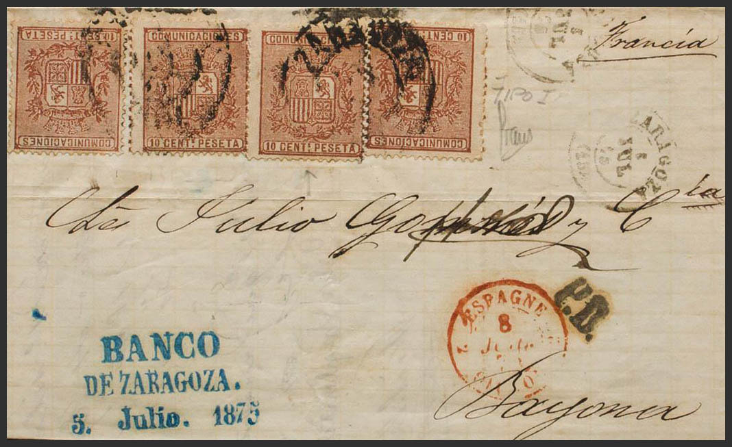 Falso Postal. FALSO POSTAL TIPO I. RARO USADO EN ZARAGOZA.