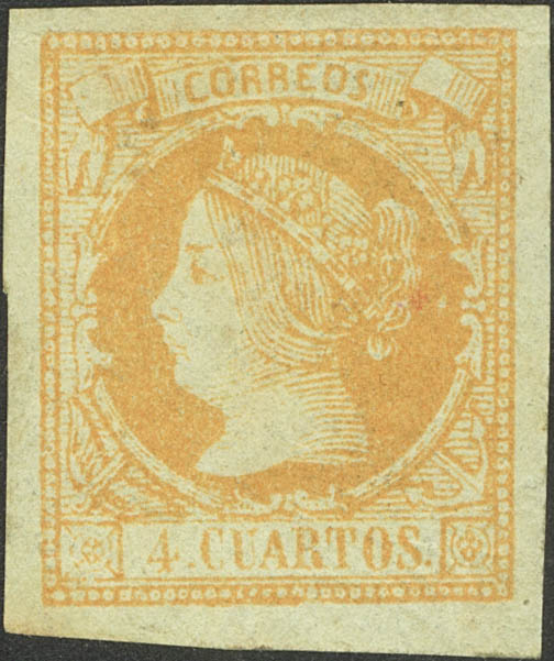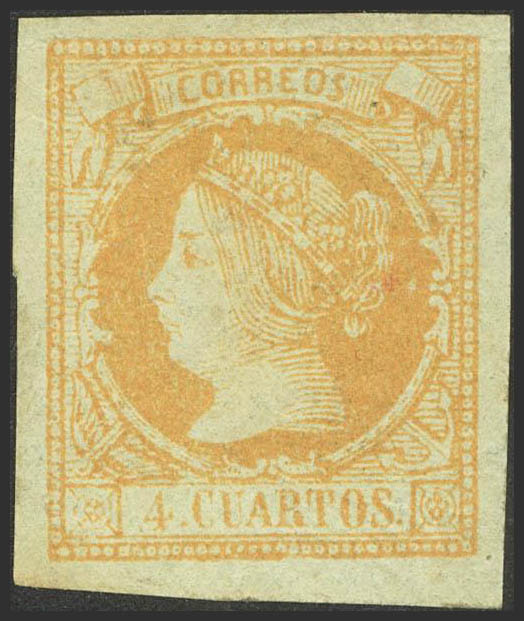 ★ 52F. 1860. 4 cuartos naranja. FALSO POSTAL TIPO VIII. MAGNIFICO.