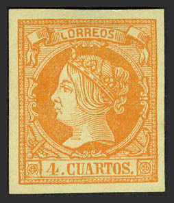 (★) 52F. 1860. 4 cuartos amarillo. FALSO POSTAL TIPO II. MAGNIFICO.