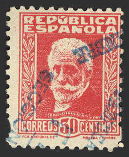 669F. 1932. 30 cts carmÃn. FALSO POSTAL TIPO II. MAGNIFICO.