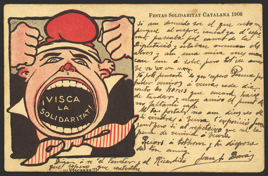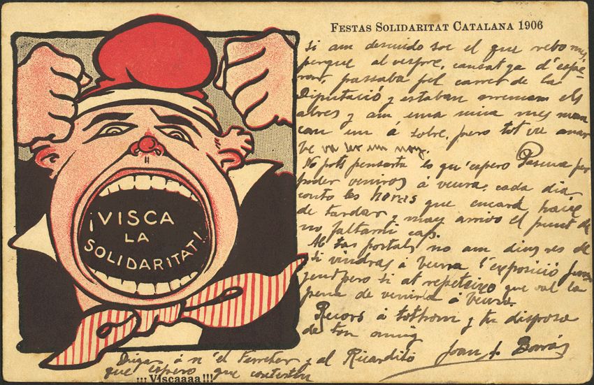 243. 1906. 10 cts. Tarjeta postal ilustrada de BARCELONA a VILLANUEVA. MAGNIFICA.
