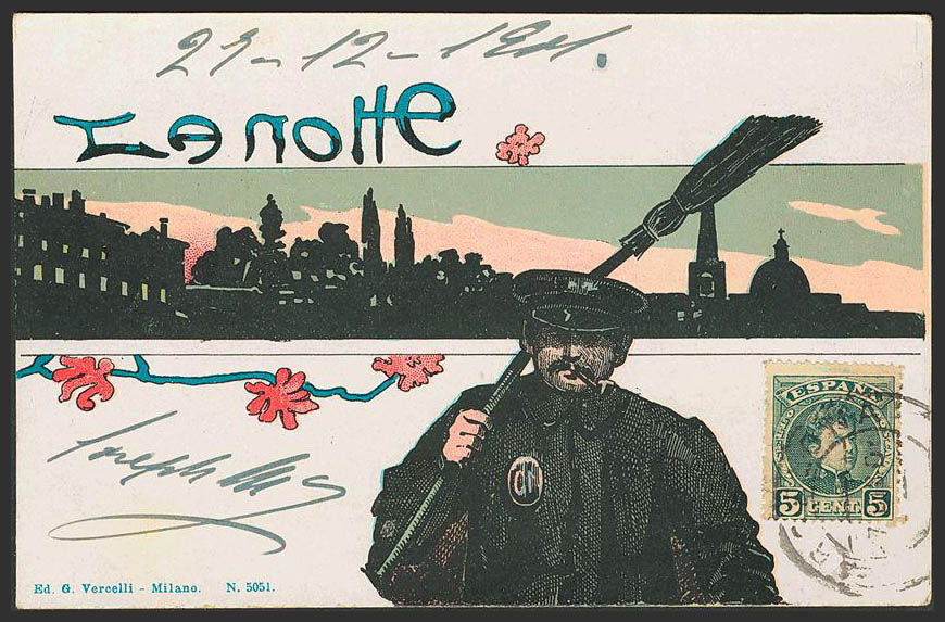242. (1900ca). 5 cts verde. Tarjeta postal ilustrada, correo interior de BARCELONA. MAGNIFICA.