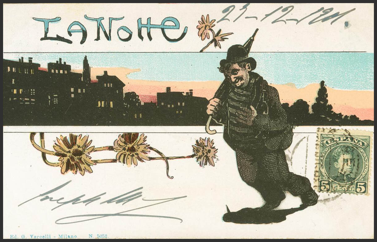 242. (1900ca). 5 cts verde. Tarjeta postal ilustrada, correo interior de BARCELONA. MAGNIFICA.