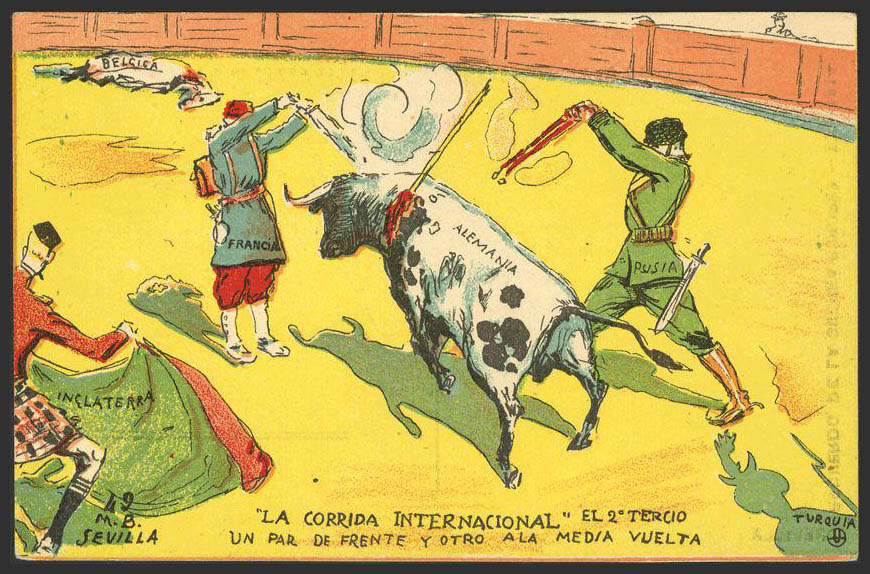 Tarjetas Postales. "RECUERDO DE LA GUERRA EUROPEA, LA CORRIDA INTERNACIONAL". Sin circular. MAGNIFICA.