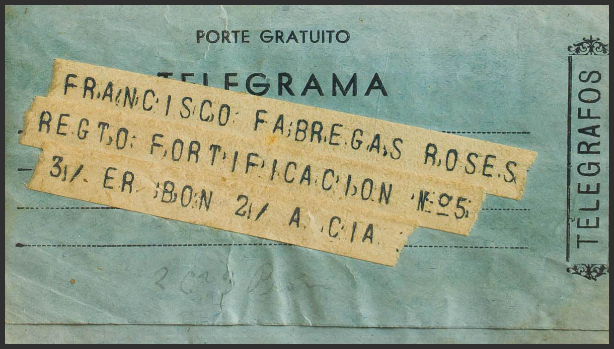 1939. Telegrama de EL MASNOU a MELILLA. MAGNIFICO.