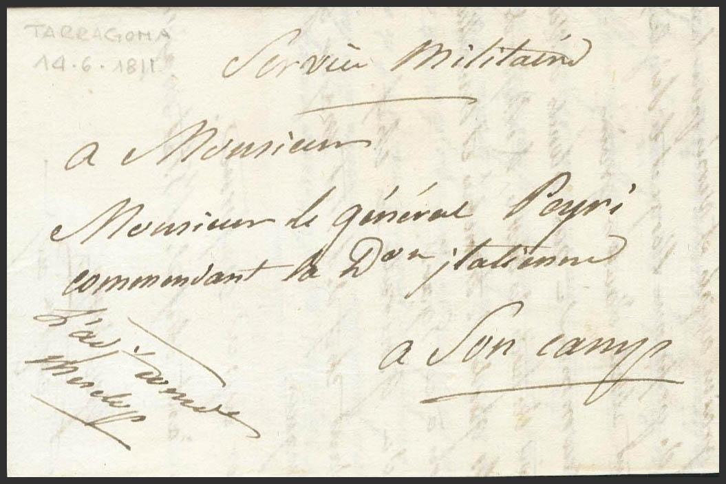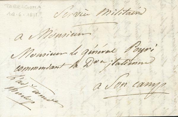 1811. (12 de Junio). CONSTANTI (TARRAGONA) al CAMPO DE TARRAGONA. Dirigida al General Comandante de la División Italiana en esta zona con órdenes importantes para el asedio de la Ciudad de Tarragona que duró entre el 5 de Mayo y el 29 de Junio de 1811. MAGNIFICA Y RARISIMA.