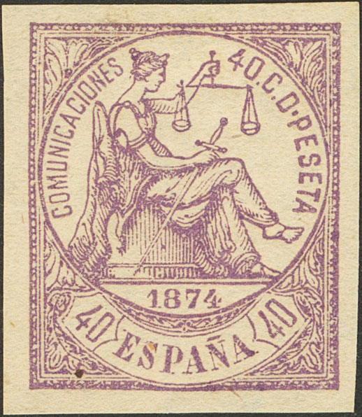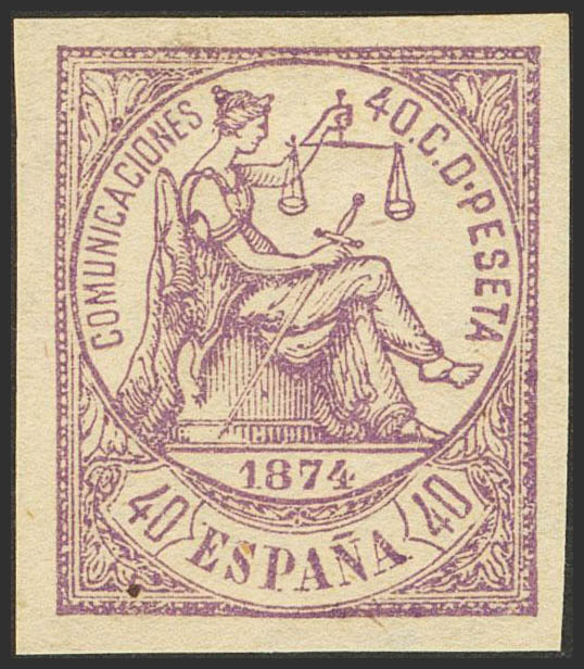 (★) 148s. 1874. 40 cts violeta (enormes márgenes). SIN DENTAR. MAGNIFICO Y DE ENORME ESPECTACULARIDAD.