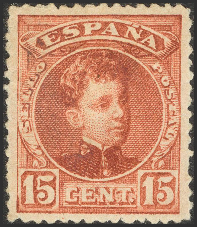 ★ NE11. 1901. 15 cts castaño rojizo (excelente centraje). NO EMITIDO. PIEZA DE LUJO, PROBABLEMENTE SE TRATE DEL MEJOR EJEMPLAR CONOCIDO, ESTE SELLO SE ENCUENTRA SIEMPRE MUY MAL CENTRADO. Cert. CEM. Edifil 2021: 1.680 Euros