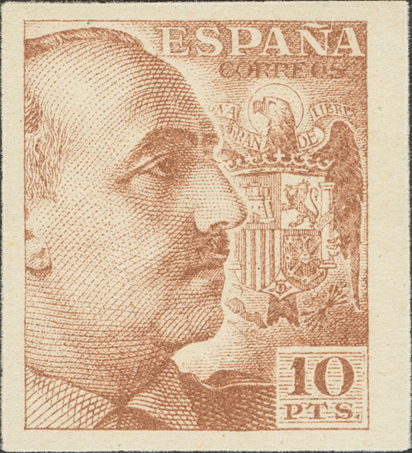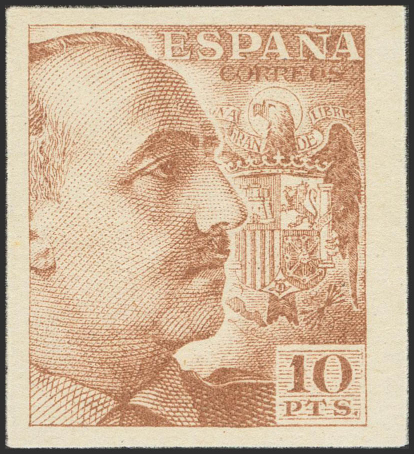 ★★ 934s. 1940. 10 pts castaño. SIN DENTAR. MAGNIFICO Y EXTRAORDINARIAMENTE RARO. Cert. GRAUS. Edifil 2021: 0 Euros