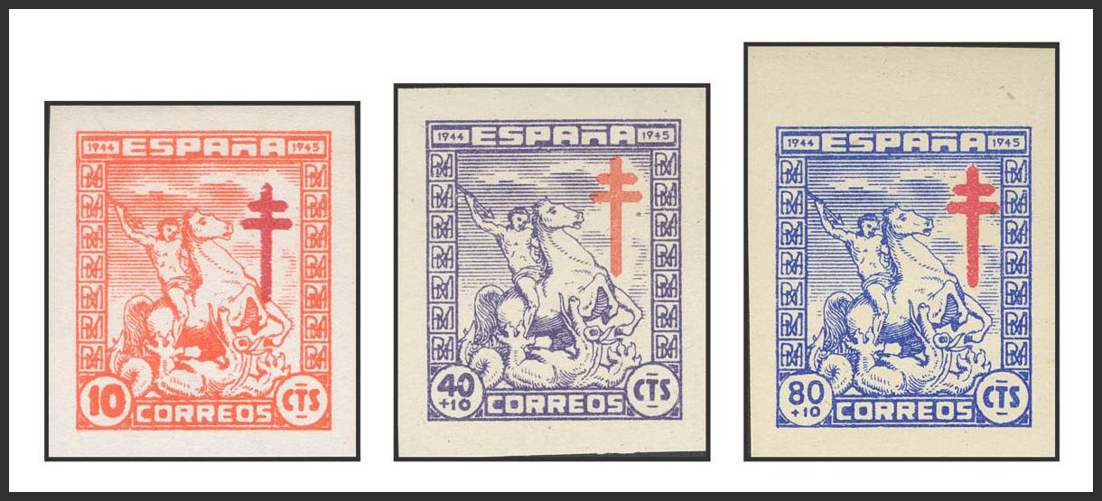 ★★ 984/87s. 1944. Serie completa, tres valores. SIN DENTAR. MAGNIFICA Y RARISIMA. Cert. CEM.