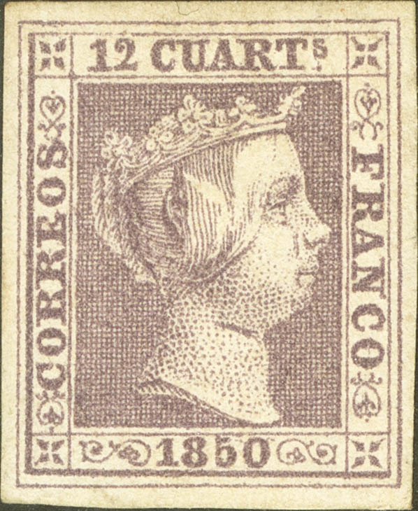 ★ 2. 1850. 12 cuartos lila. Color intenso y grandes márgenes. MAGNIFICO.
