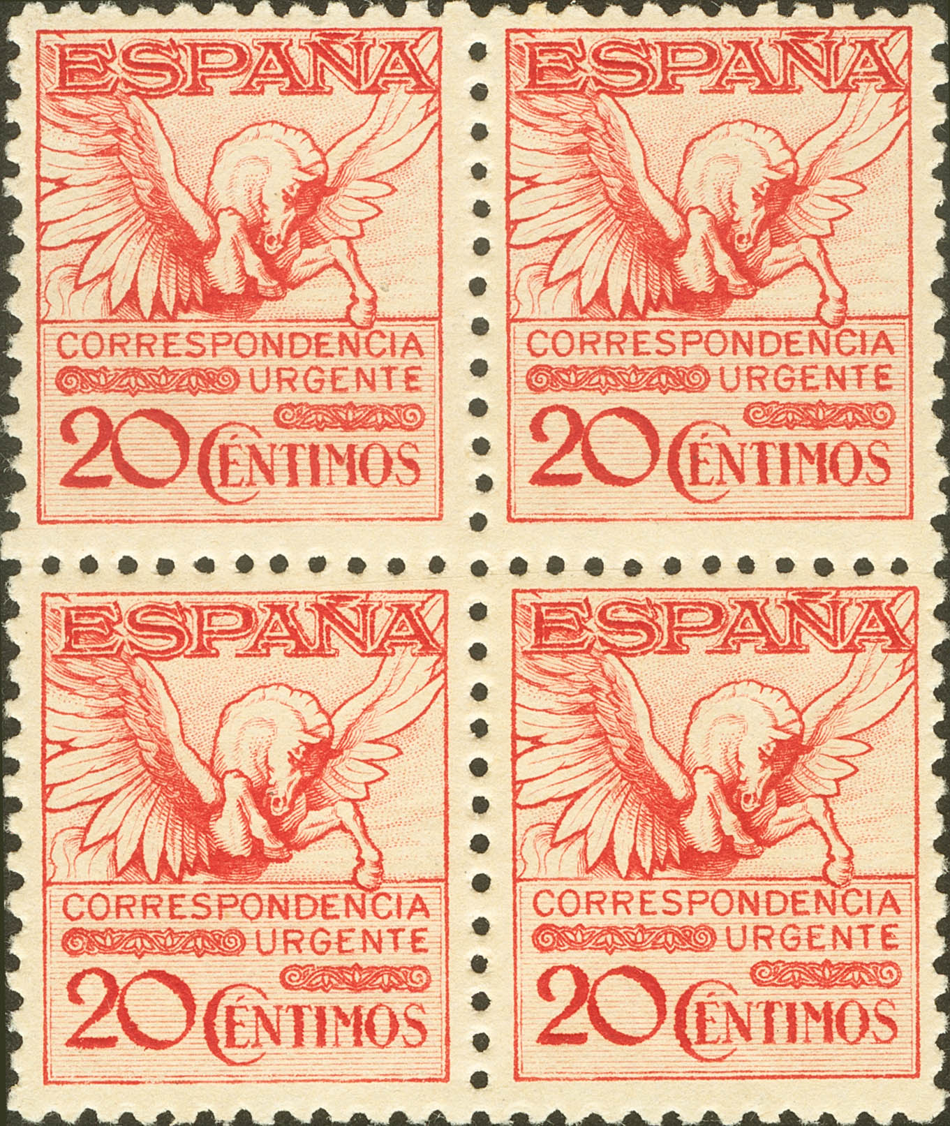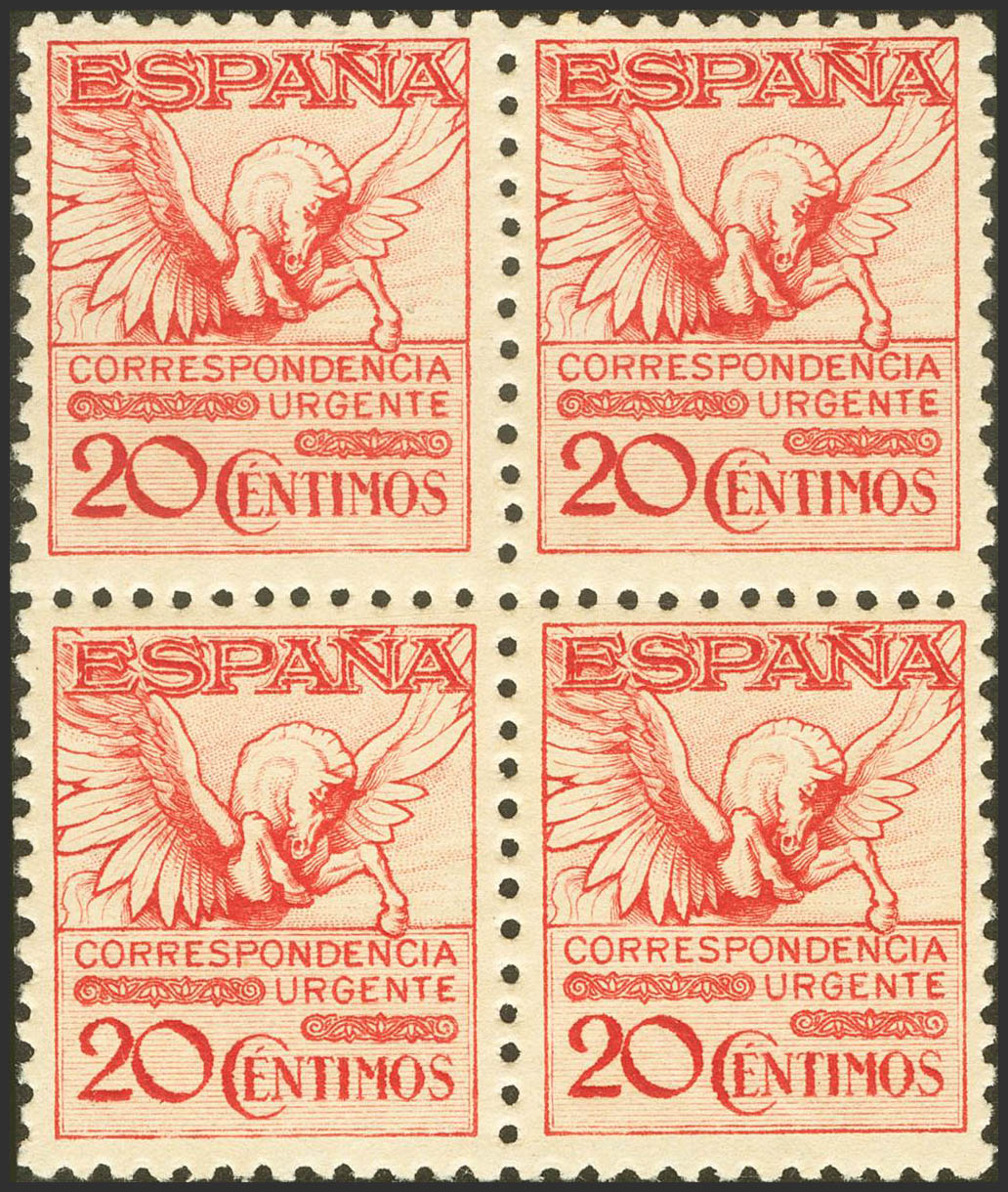 ★★ 676(4). 1932. 20 cts rosa rojizo, bloque de cuatro. Muy bien centrado. MAGNIFICO Y RARO. Cert. CEM. Edifil 2023: +800 Euros