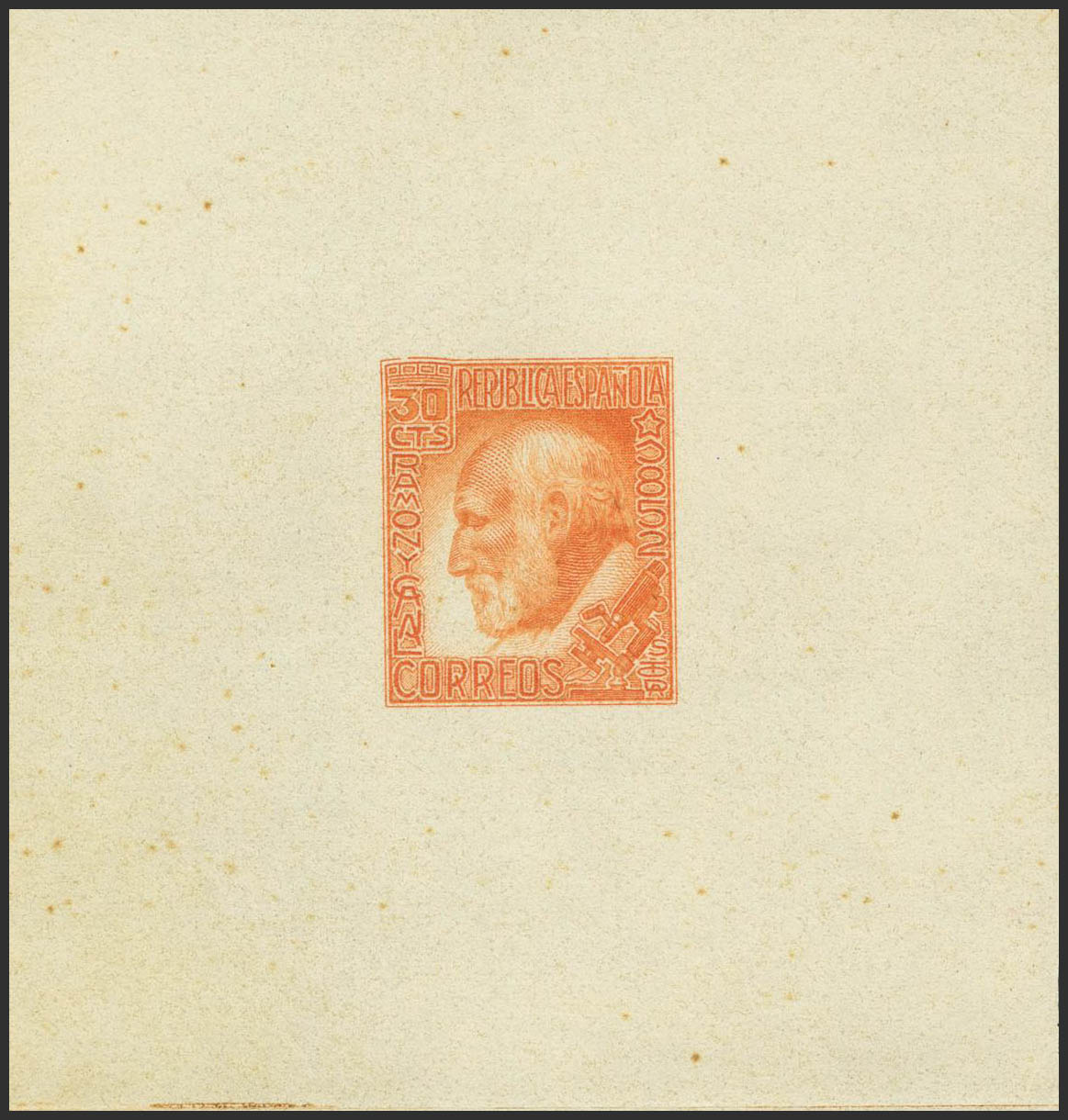 (★) 680P. 1930. 30 cts naranja. PRUEBA DE PUNZON, sin pie de imprenta. MAGNIFICA Y MUY RARA.