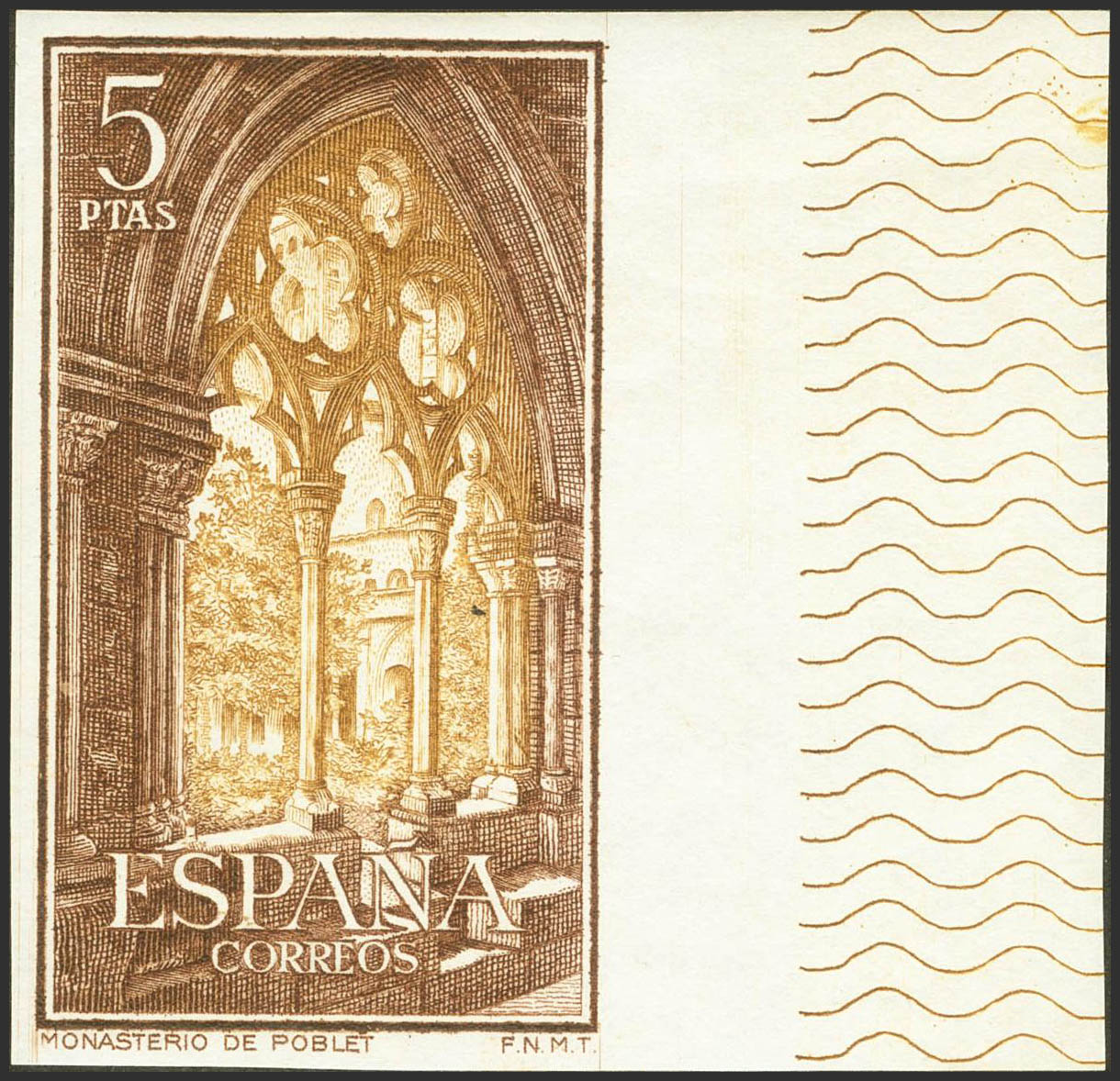 ★★ 1497s. 1963. 5 pts castaño y ocre, borde de hoja. SIN DENTAR. PIEZA DE LUJO. Cert. CEM.
