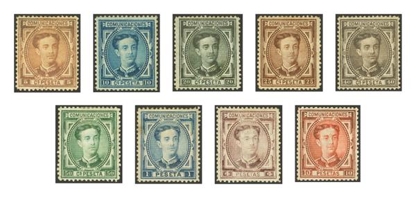 ★ 174/82. 1876. Serie completa. Excelentes centrajes. MAGNIFICA Y RARA EN ESTA EXCEPCIONAL CALIDAD. Cert. GRAUS (4 pts) y CEM (40 cts).