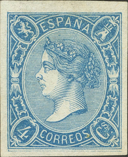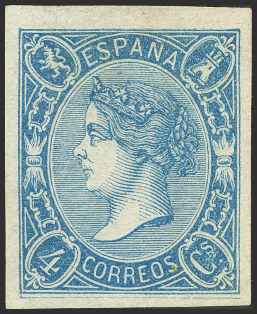 (★) NE2. 1865. 4 cuartos azul. NO EMITIDO. PIEZA DE LUJO Y RARO. Cert. CEM y EXFIMA.