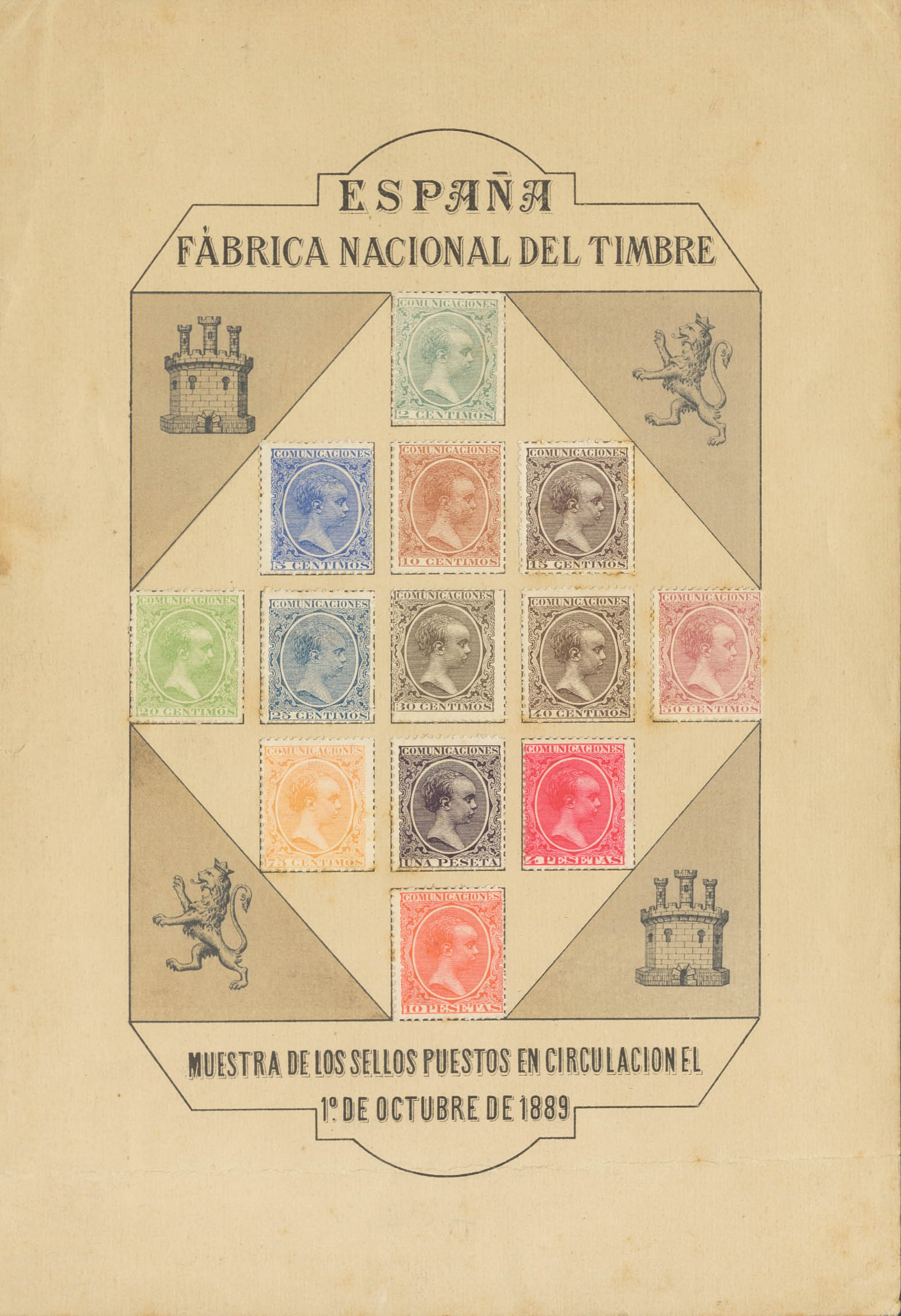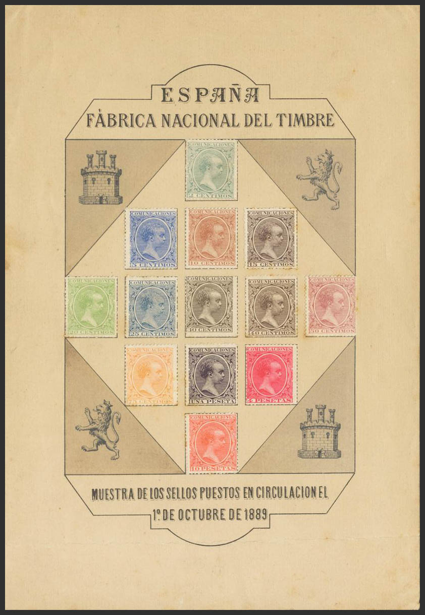 (★) 213/28P. 1889. HOJA MUESTRA de la emisión del Pelón, impresa por la F.N.M.T. MAGNIFICA Y RARISIMA.