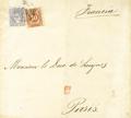 94, 107. 1870. 10 cts castaño y 50 mils azul. Faja de Periódico dirigida a PARIS (FRANCIA). Matasello RUEDA DE CARRETA. MAGNIFICA Y MUY RARA CON ESTE FRANQUEO DE DOS EMISIONES DIFERENTES, EL 10 CTS CASTAÑO ESTABA DESMONETIZADO PERO FUE ACEPTADO, UNICA CONOCIDA CON ESTA COMBINACION DE SELLO MONARQUICO Y GOBIERNO PROVISIONAL.