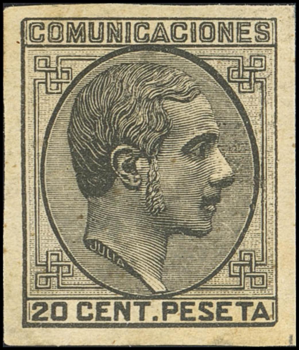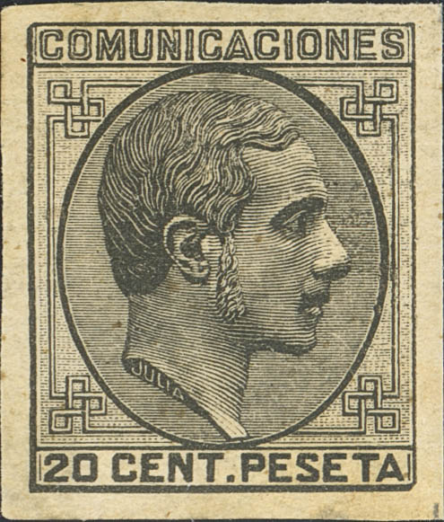 ★ 193s. 1878. 20 cts negro (grandes márgenes). SIN DENTAR. MAGNIFICO Y MUY RARO. Cert. CEM.