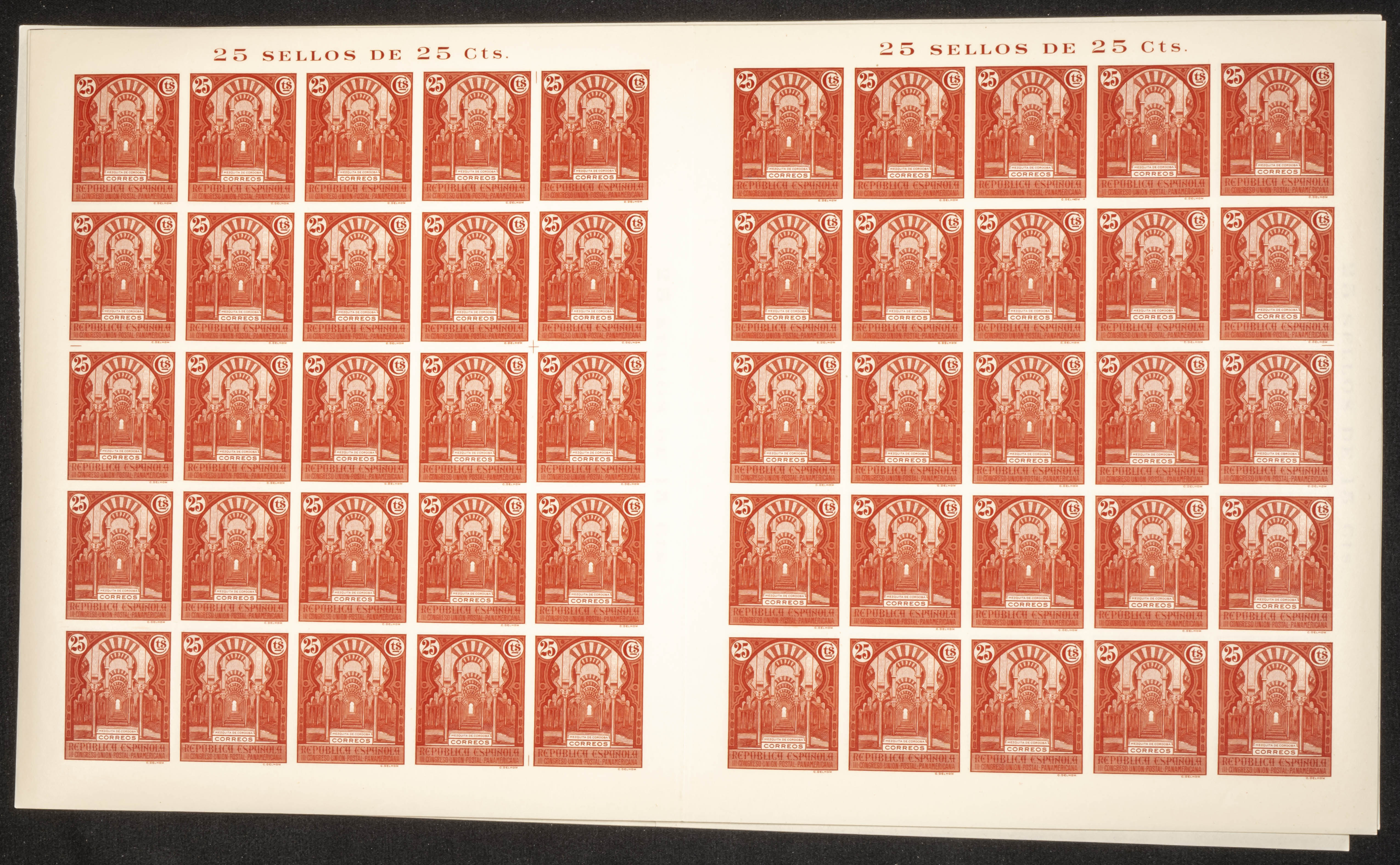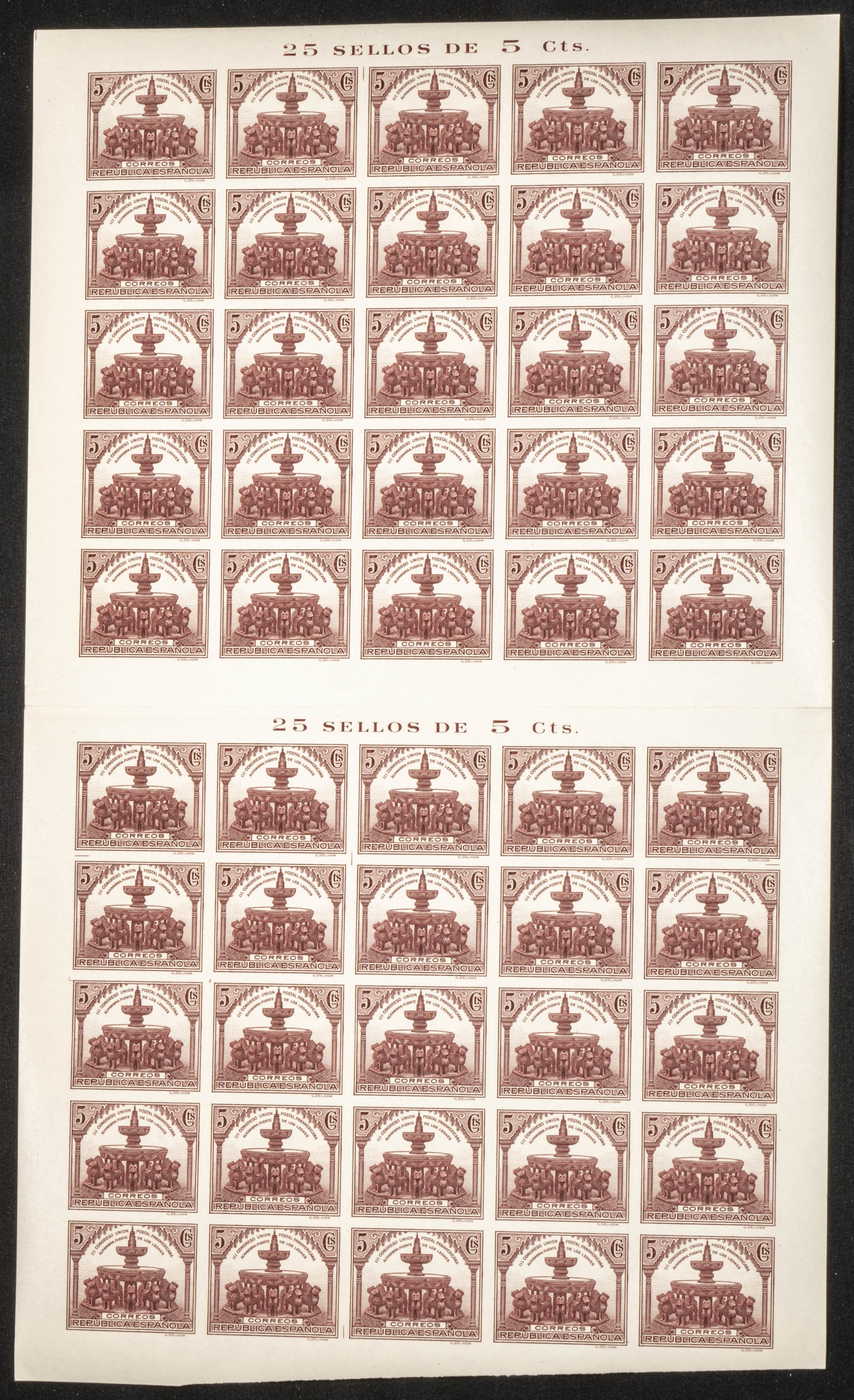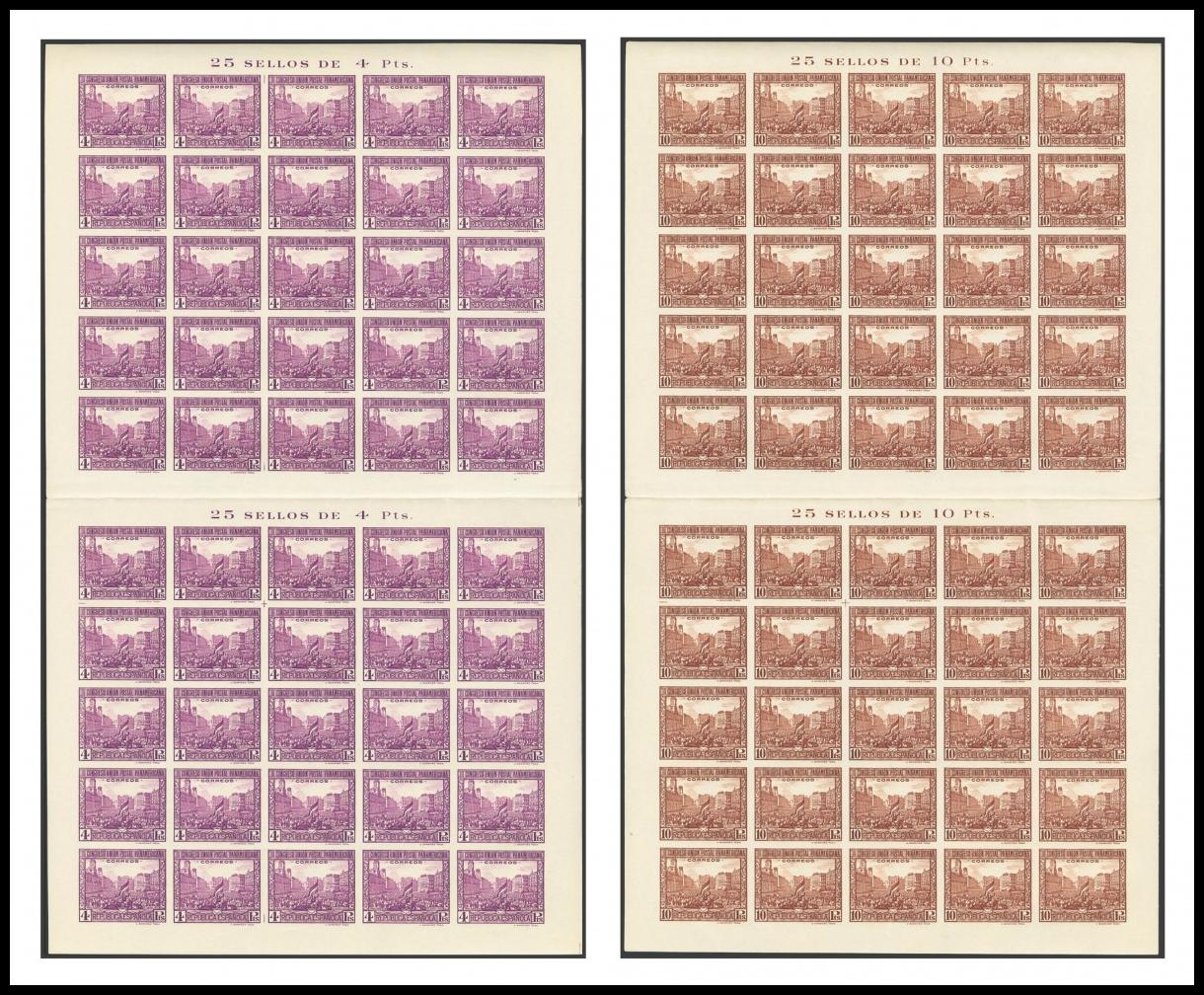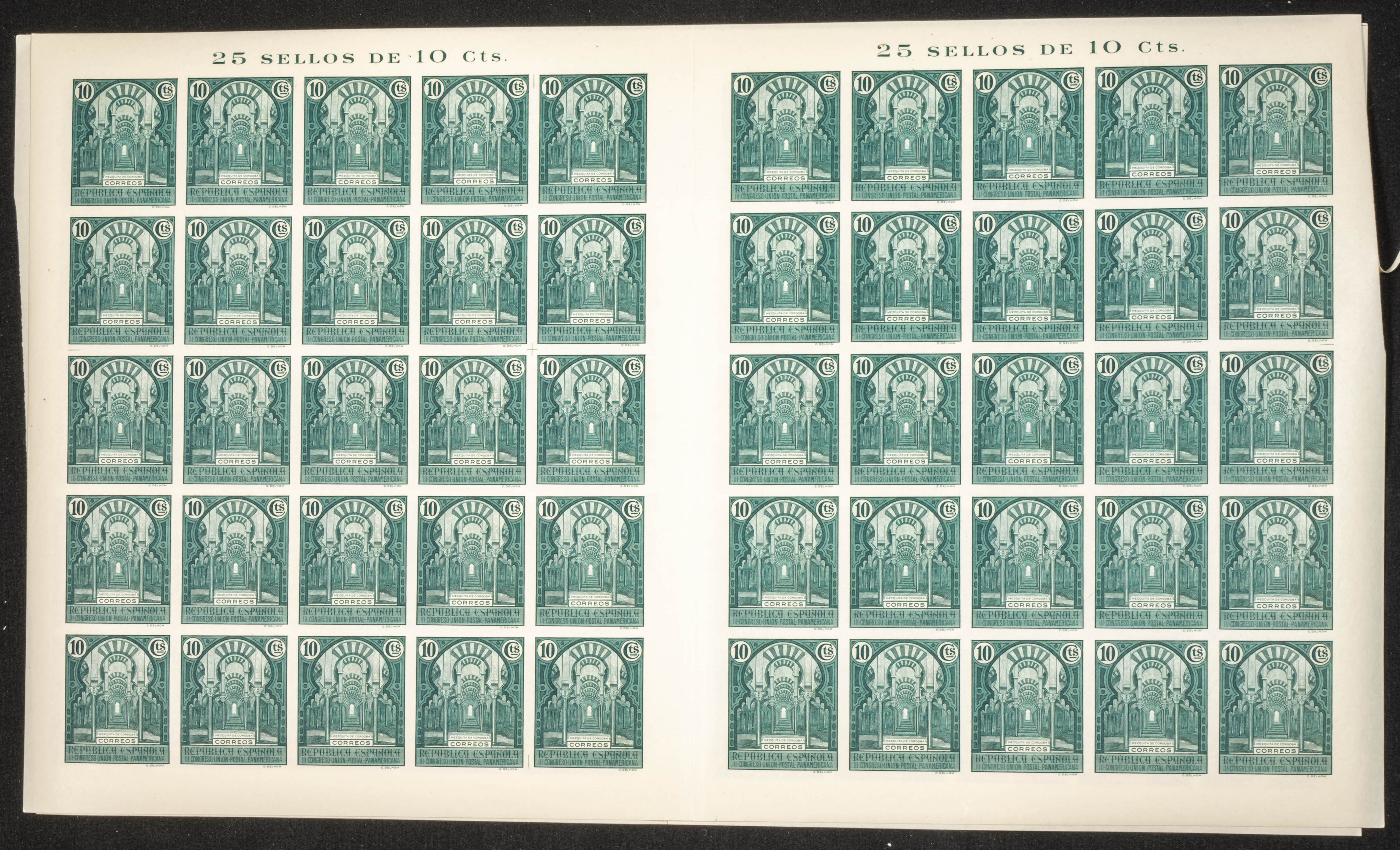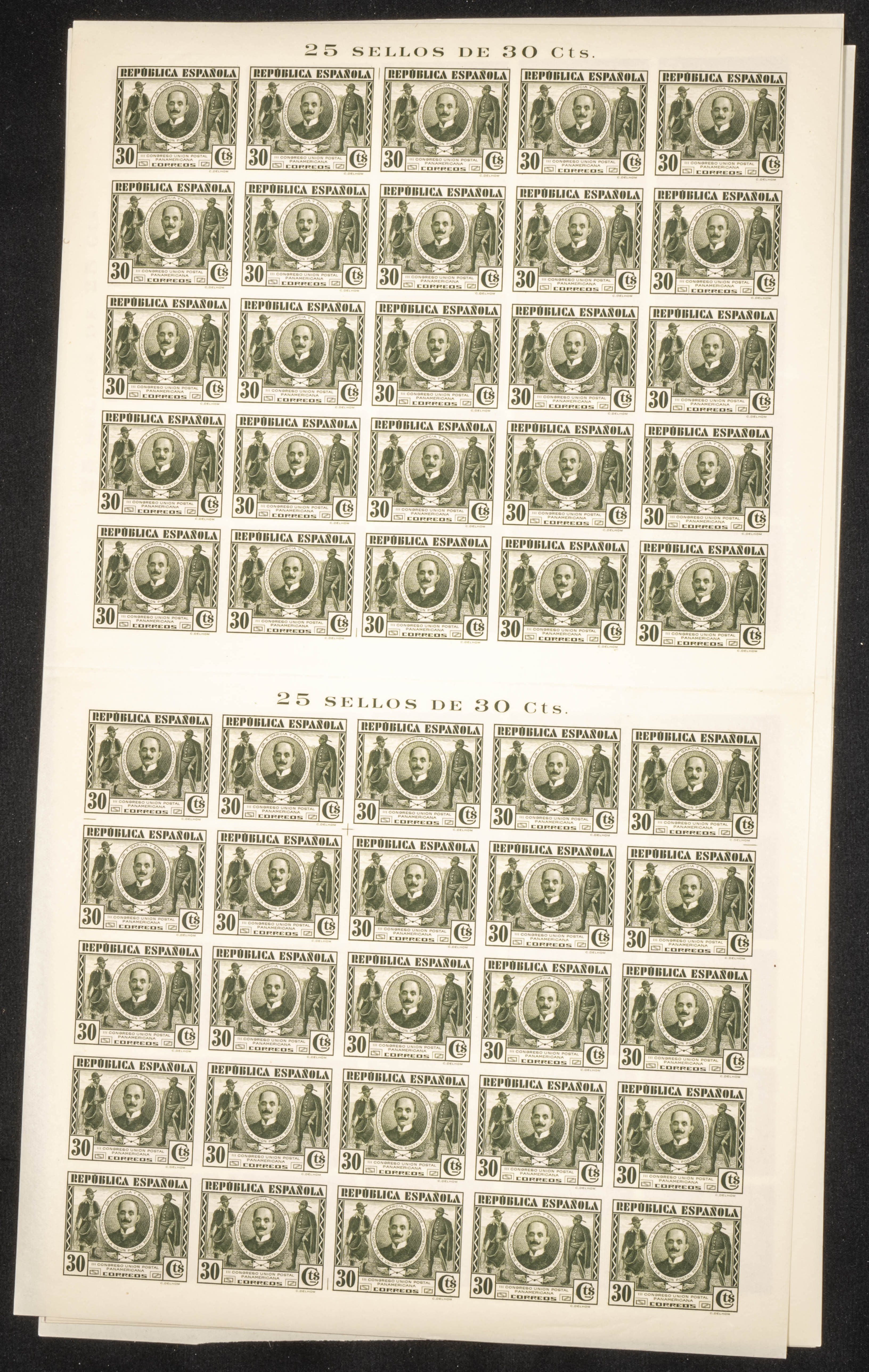 ★★ 604/13s(50). 1931. Serie completa, en pliegos de cincuenta sellos. SIN DENTAR. MAGNIFICO Y RARISIMO CONJUNTO, DE ENORME ESPECTACULARIDAD QUE INCLUYE EL INTERPANEL. Edifil 2025: +++19.250 Euros