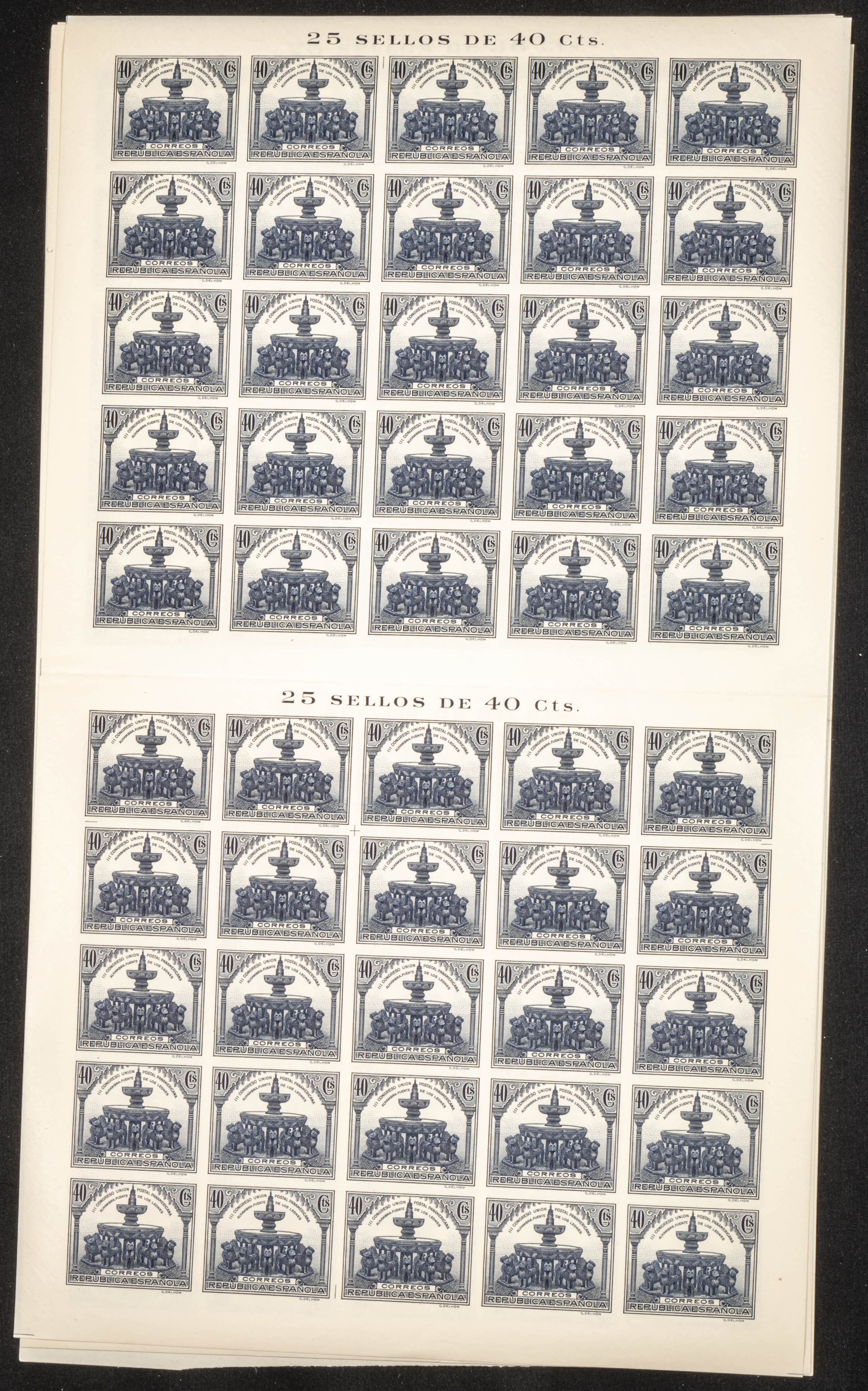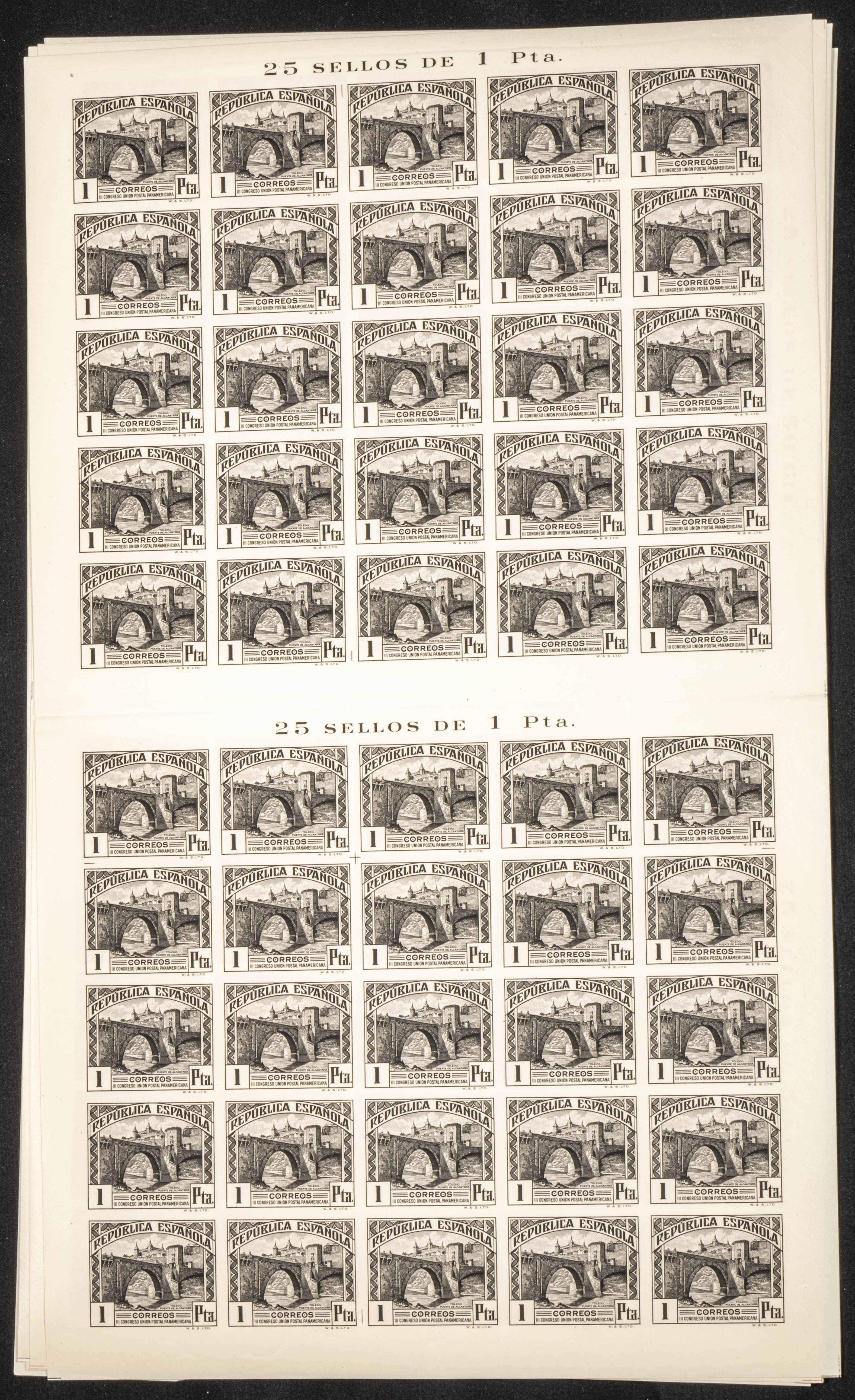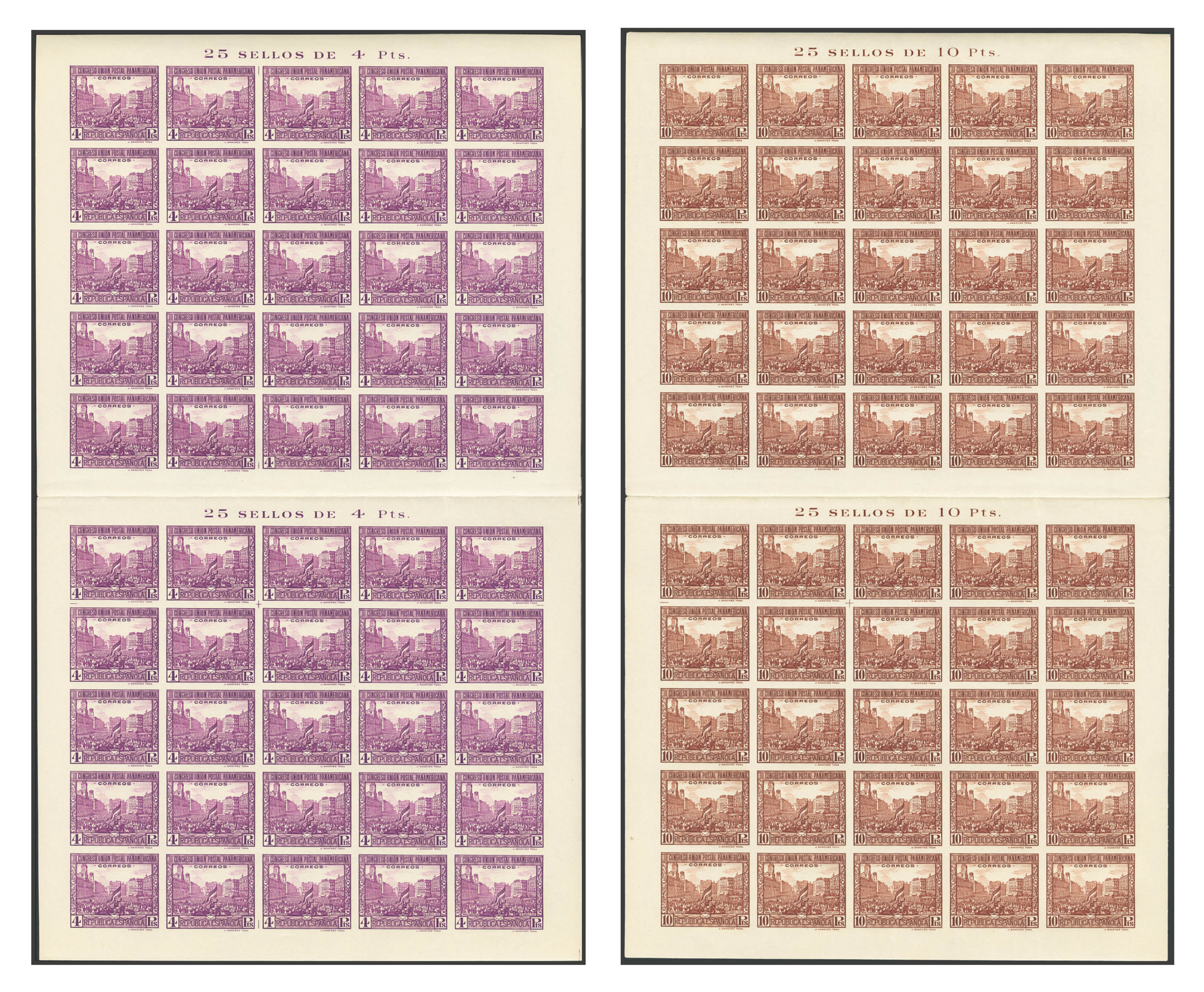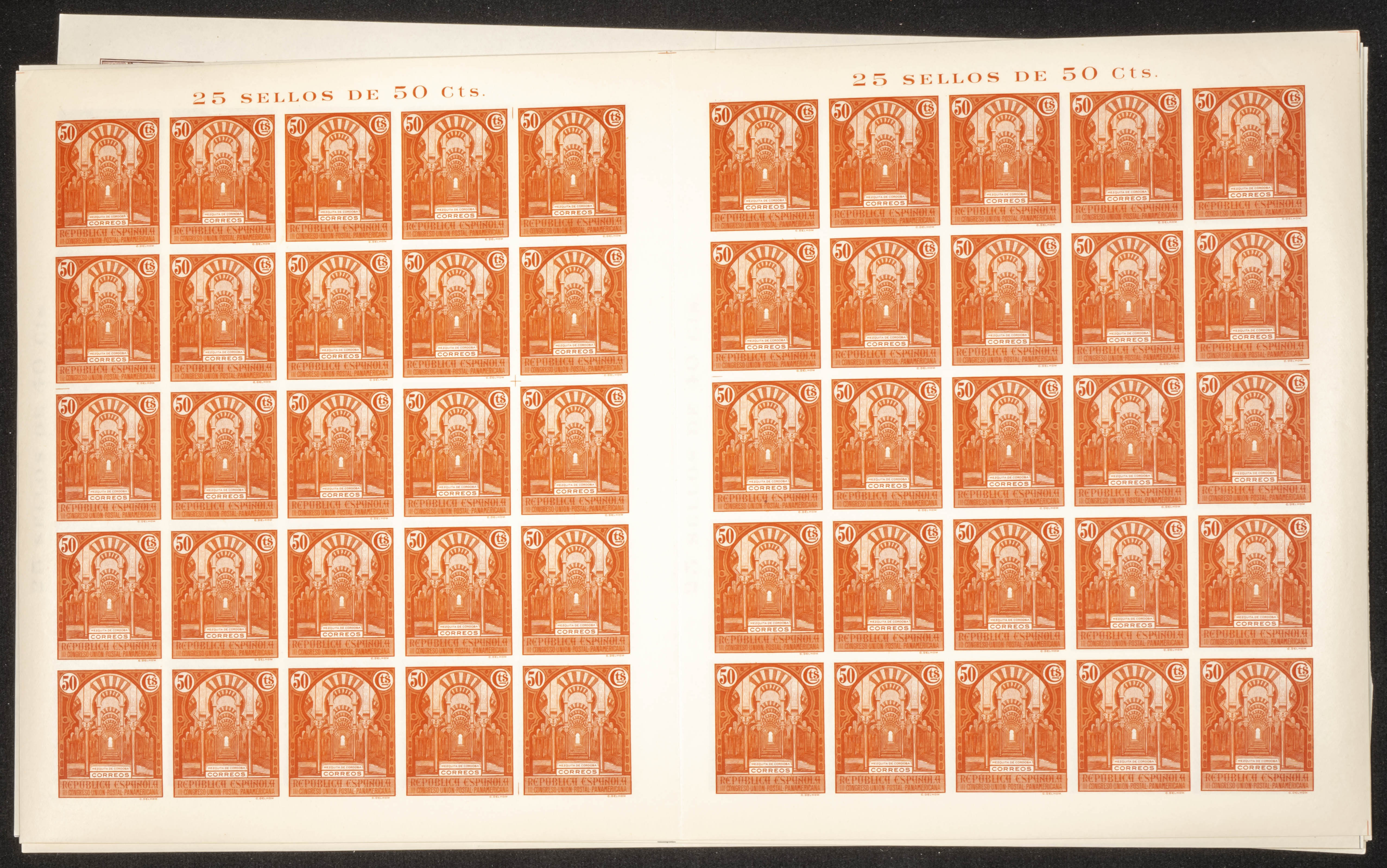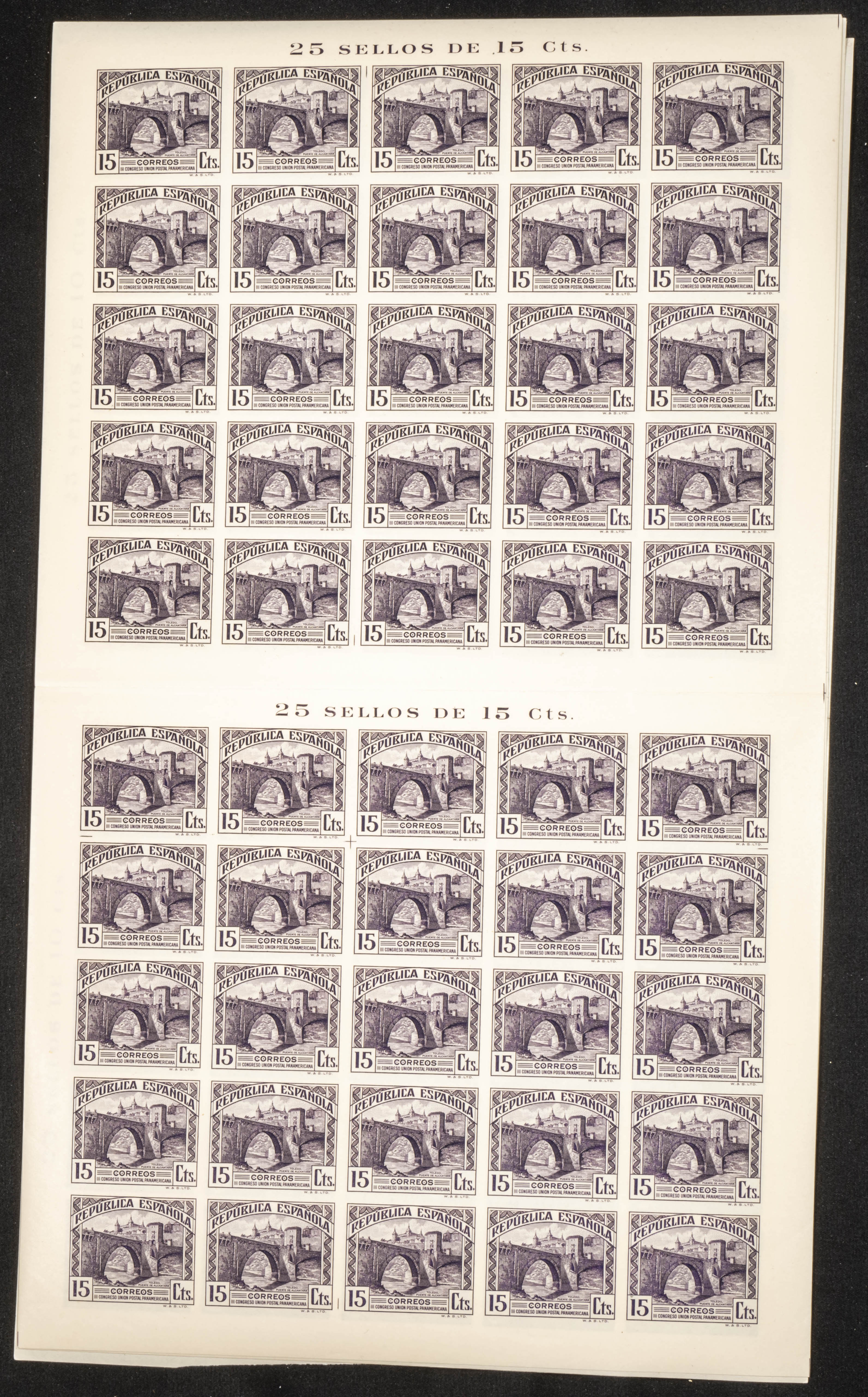 ★★ 604/13s(50). 1931. Serie completa, en pliegos de cincuenta sellos. SIN DENTAR. MAGNIFICO Y RARISIMO CONJUNTO, DE ENORME ESPECTACULARIDAD QUE INCLUYE EL INTERPANEL. Edifil 2025: +++19.250 Euros