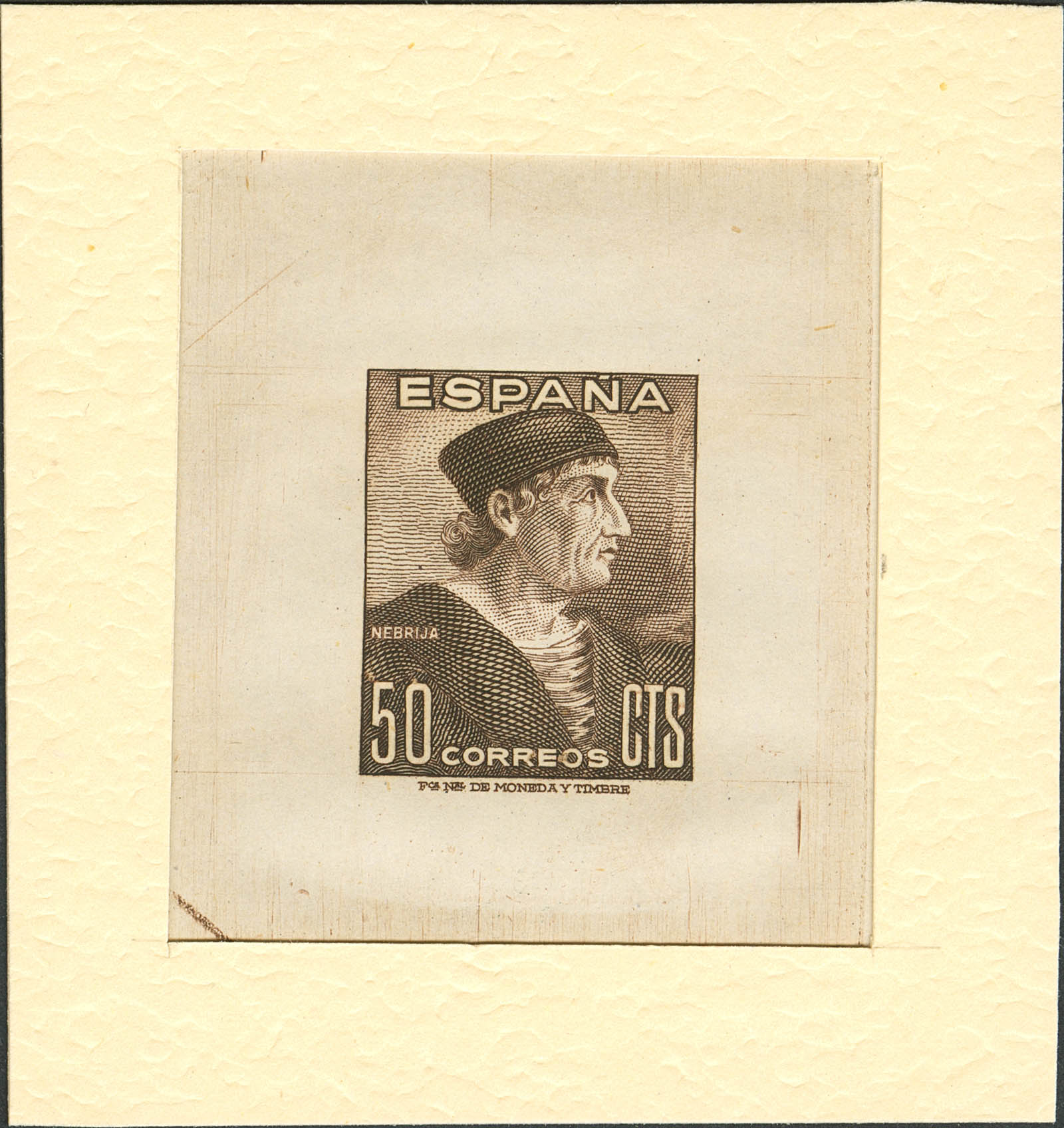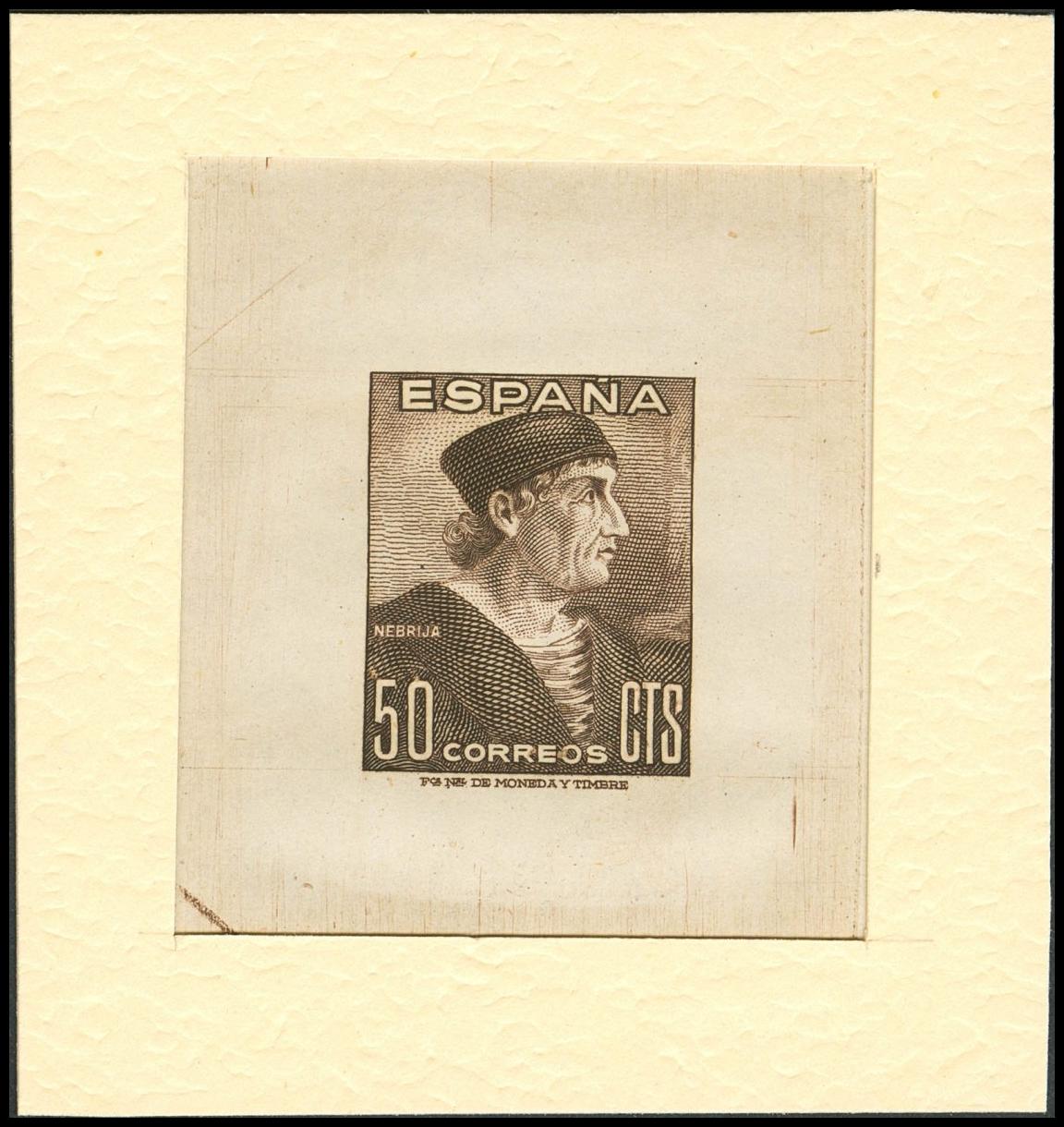 (★) 1002P. 1948. 50 cts castaño claro. PRUEBA DE PUNZON. MAGNIFICA Y RARISIMA.