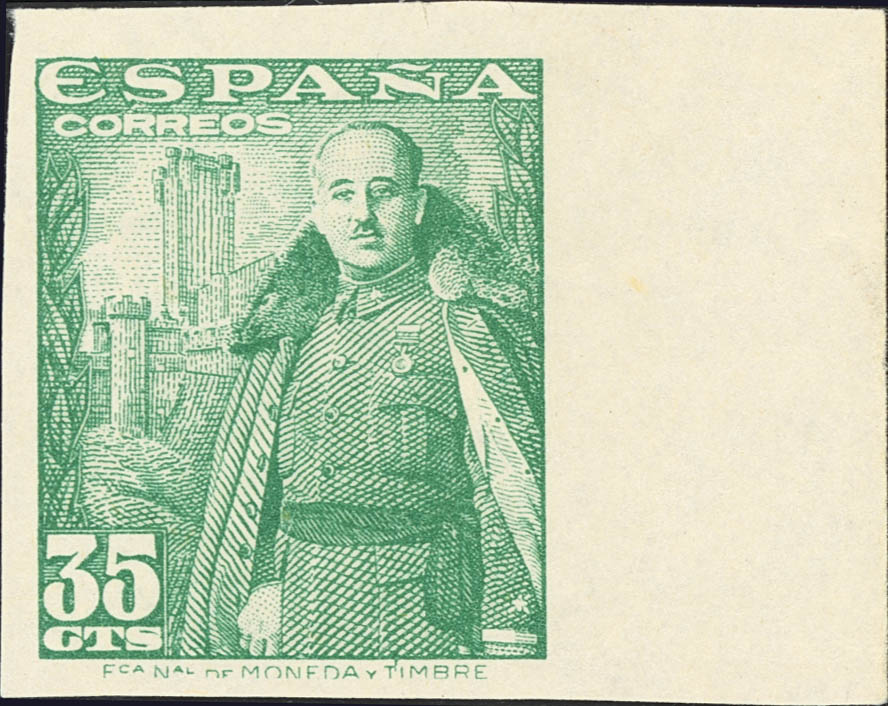 ★★ 1026s. 1948. 35 cts verde, borde de hoja. SIN DENTAR. MAGNIFICO. Edifil 2025: +440 Euros