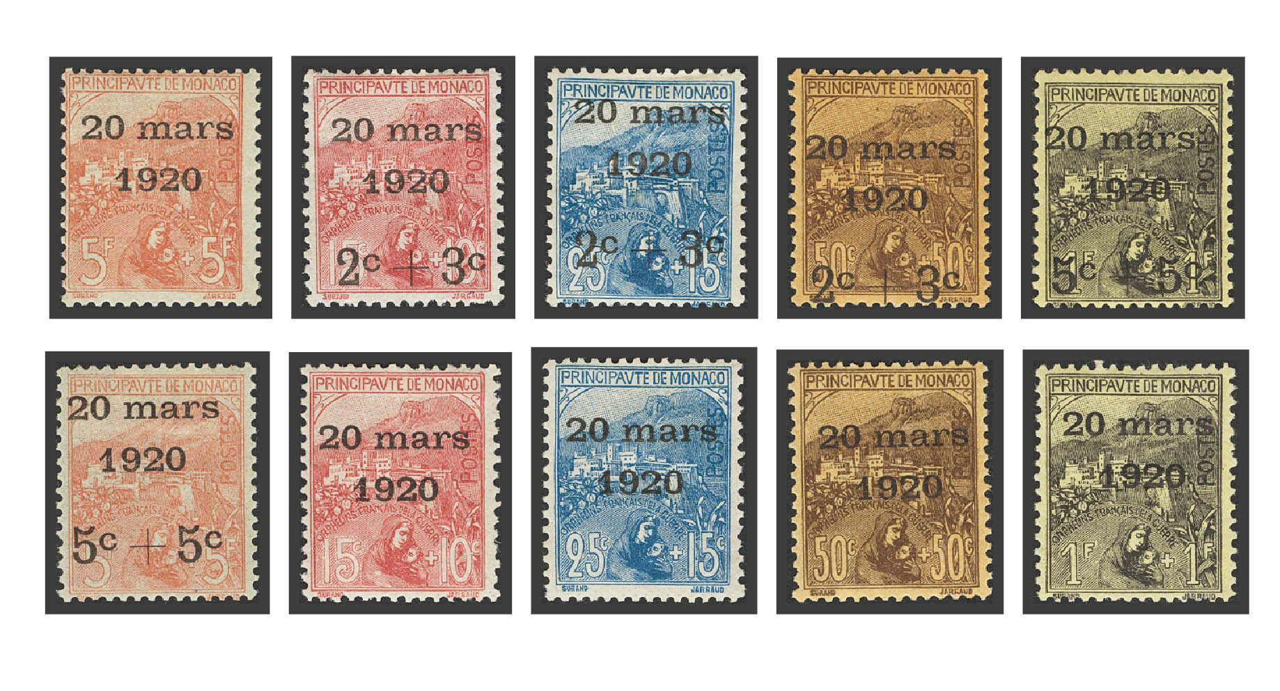 ★Yvert 34/43. 1920. Serie completa. Centraje habitual. BONITA Y RARA. Cert. SCHELLER. Yvert 2014: 8.820 Euros