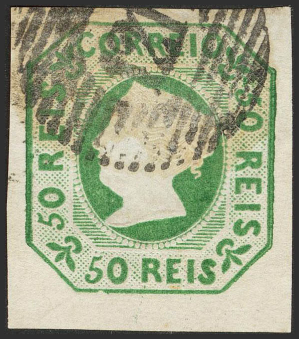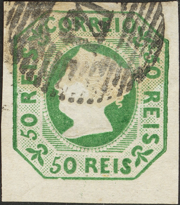 Yvert 3. 1853. 50 reis verde. Matasello numeral "121", de Lamego. MAGNIFICO Y RARO. Yvert 2012: 1.000 Euros