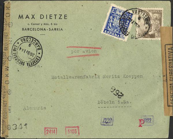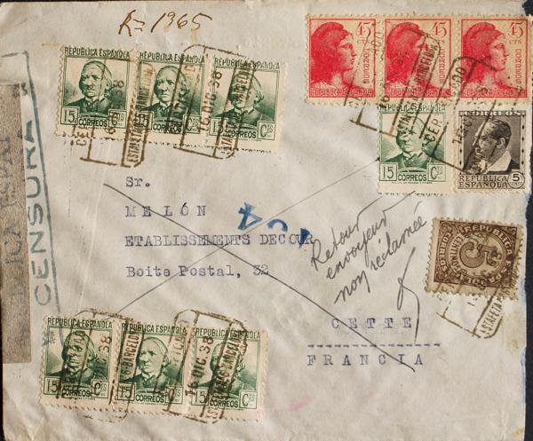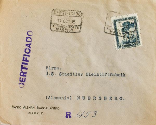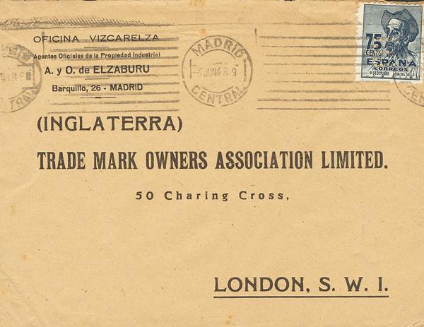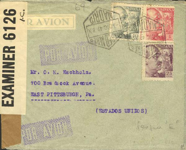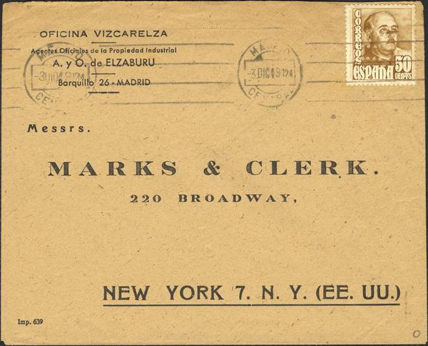 1022(9), 1044, 1046(4). 1949. 5 cts, 15 cts, bloque de cuatro y 50 cts, nueve sellos. Certificado de SANTA CRUZ DE TENERIFE a MADRID. Al dorso llegada. MAGNIFICA.