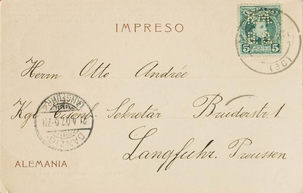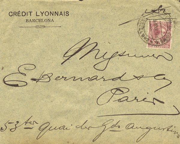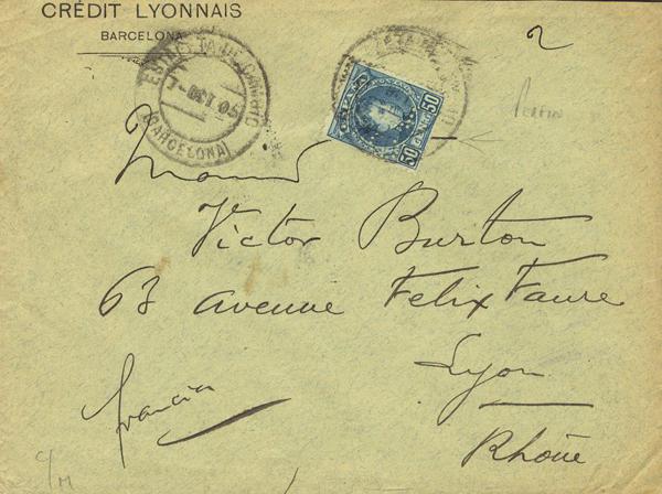 64F. 1864. 4 cuartos rojo FALSO POSTAL TIPO UNICO. Matasello PARRILLA CON Nº1. MAGNIFICO E INUSUAL.