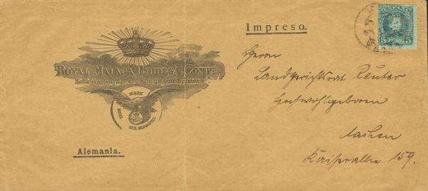 102F(18). 1883. 10 ctvos castaño, bloque de dieciocho (sin dentar). FALSO POSTAL. MAGNIFICO Y RARISIMO, POSIBLEMENTE SE TRATE DEL MAYOR BLOQUE CONOCIDO. Cert. ECHENAGUSIA.