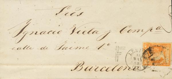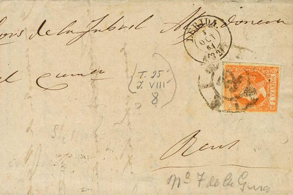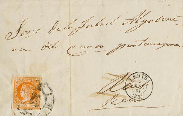Estado Español. CASSA DE LA SELVA, al dorso tránsito. MAGNIFICA.