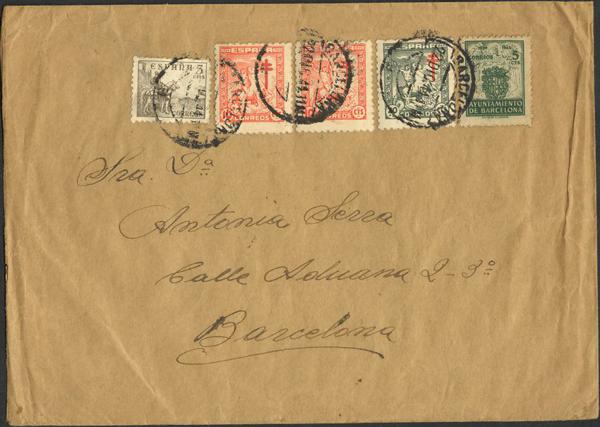 857, 858(3). 1939. 30 cts rosa, 40 cts violeta, tres sellos y diversos valores. BARCELONA a GINEBRA (SUIZA). MAGNIFICA.