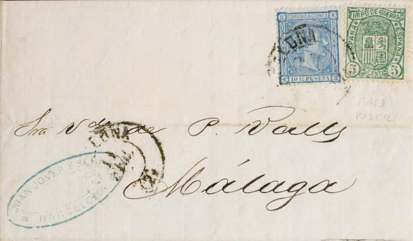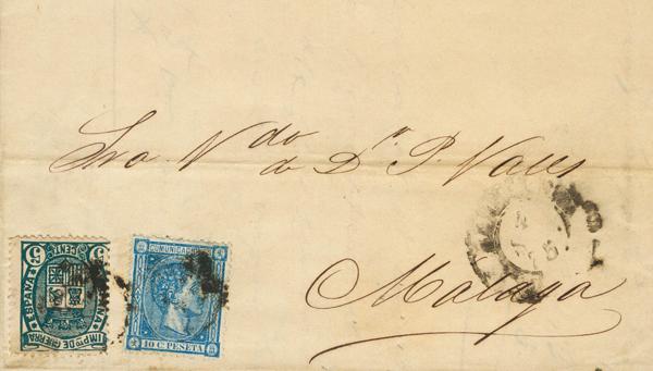 816(2), 829(4), 841(2). 1938. 5 cts, dos sellos, 15 cts, pareja y 1 pts, bloque de cuatro. Carta aérea de MALAGA a ROMA. Al dorso llegada. MAGNIFICA.