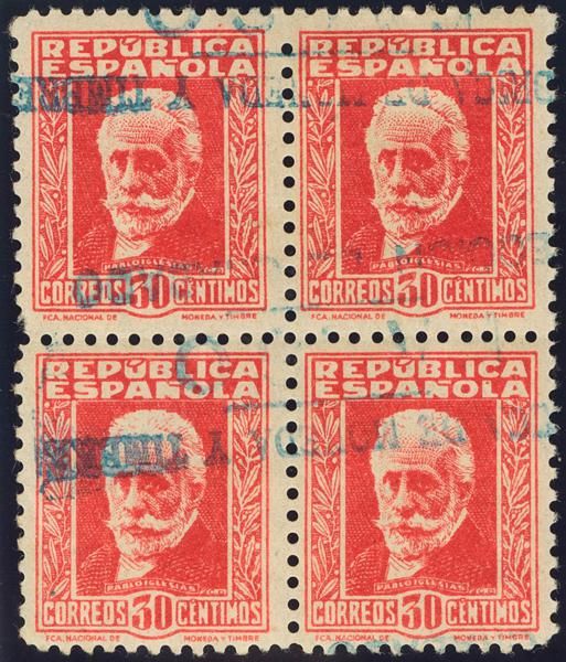 829(15),816. 1937. 30 cts, bloque de quince, 5 cts y 5 cts viñeta. SEVILLA a MONTEVIDEO. Matasello CORREO AEREO / SEVILLA, transportada "POR CORREO AEREO". MAGNIFICA Y ESPECTACULAR.