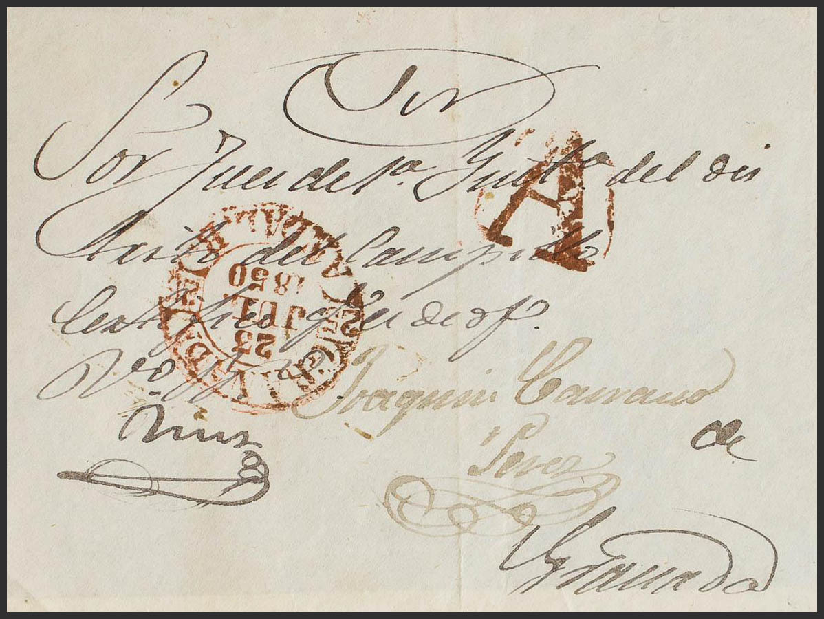 AndalucÃa. Prefilatelia. Marca "A", en rojo de Granada. MAGNIFICA.