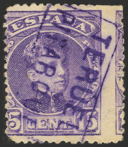 Aragón. Filatelia. CarterÃa TERUEL / PITARQUE, en violeta. MAGNIFICO.