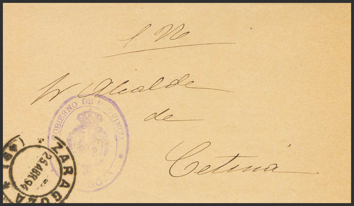 Aragón. Historia Postal. Marca GOBIERNO DE PROVINCIA / ZARAGOZA. MAGNIFICA.