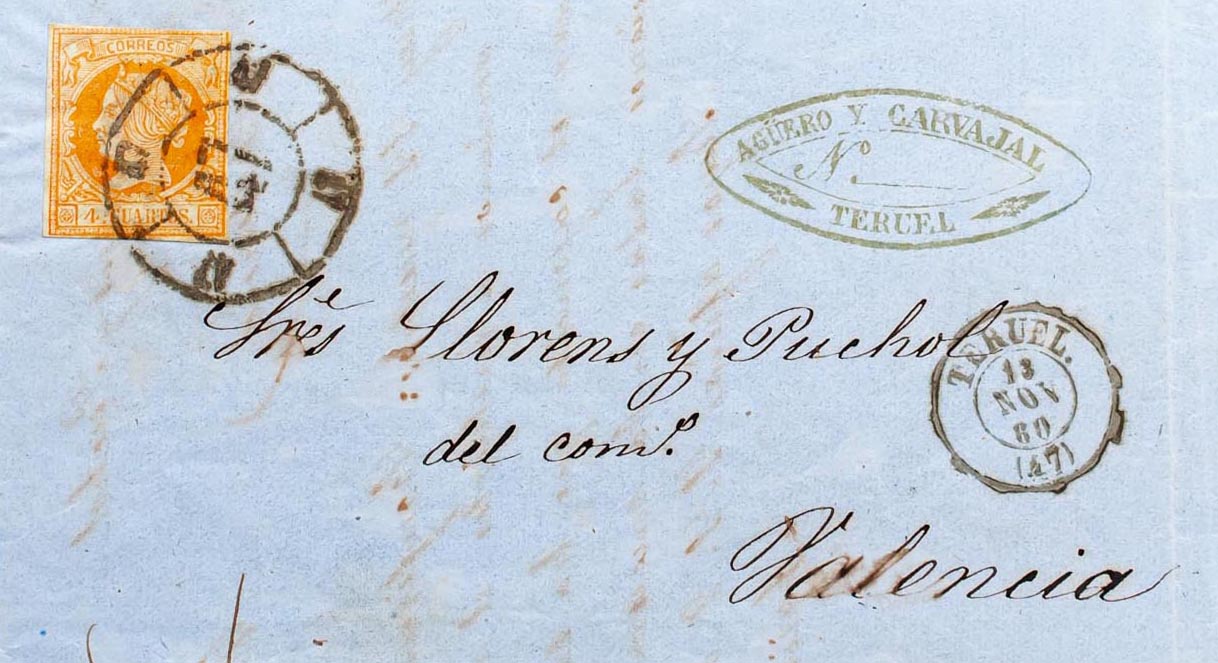 Aragón. Historia Postal. R.CARRETA Nº47, de Teruel. MAGNIFICA E INUSUAL.