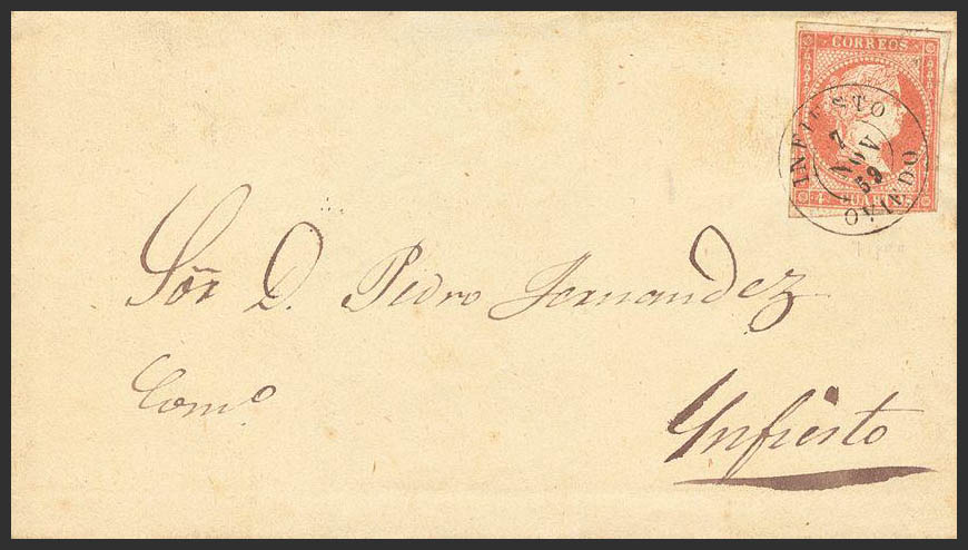 Asturias. Historia Postal. INFIESTO / OVIEDO. MAGNIFICA.