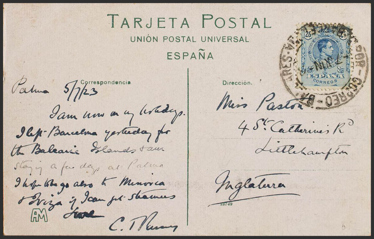 Islas Baleares. Historia Postal. POR CORREO BALEARES-BARCELONA. MAGNIFICA.