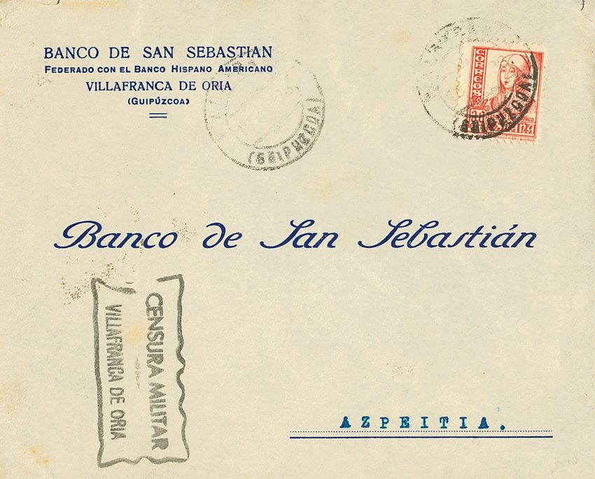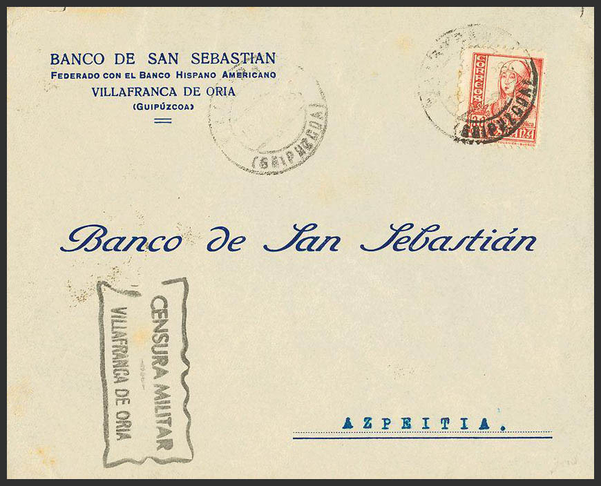 PaÃs Vasco. Historia Postal. CENSURA MILITAR / VILLAFRANCA DE ORIA, al dorso llegada. MAGNIFICA.
