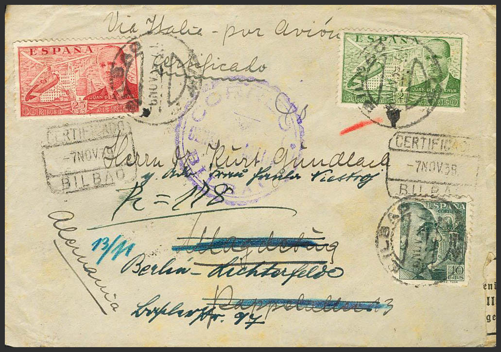 PaÃs Vasco. Historia Postal. CERTIFICADO / BILBAO. MAGNIFICA.
