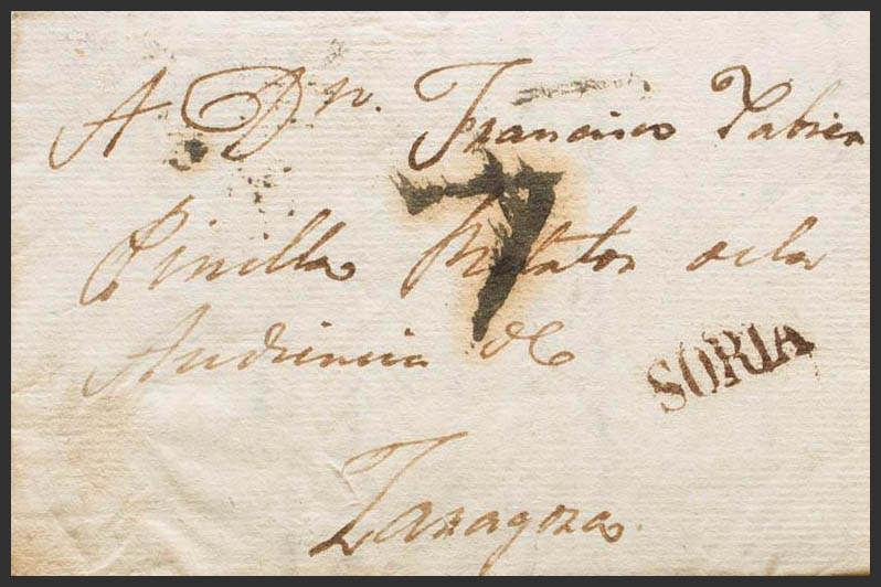 Castilla y León. Historia Postal. CASTILFRIO a ZARAGOZA. Marca SORIA, en negro de Soria (P.E.21) edición 2004. MAGNIFICA Y MUY RARA.