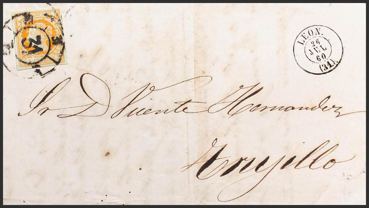 Castilla y León. Historia Postal. R.CARRETA Nº31, de León. MAGNIFICA.