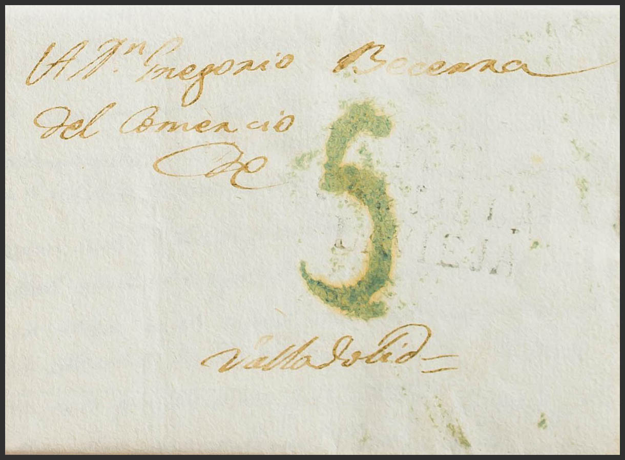 1838. MOTA DEL MARQUES a VALLADOLID. Marca M.T. / CASTILLA / LA VIEJA, en negro (P.E.1) edición 2004 (estampación débil). BONITA Y RARA.